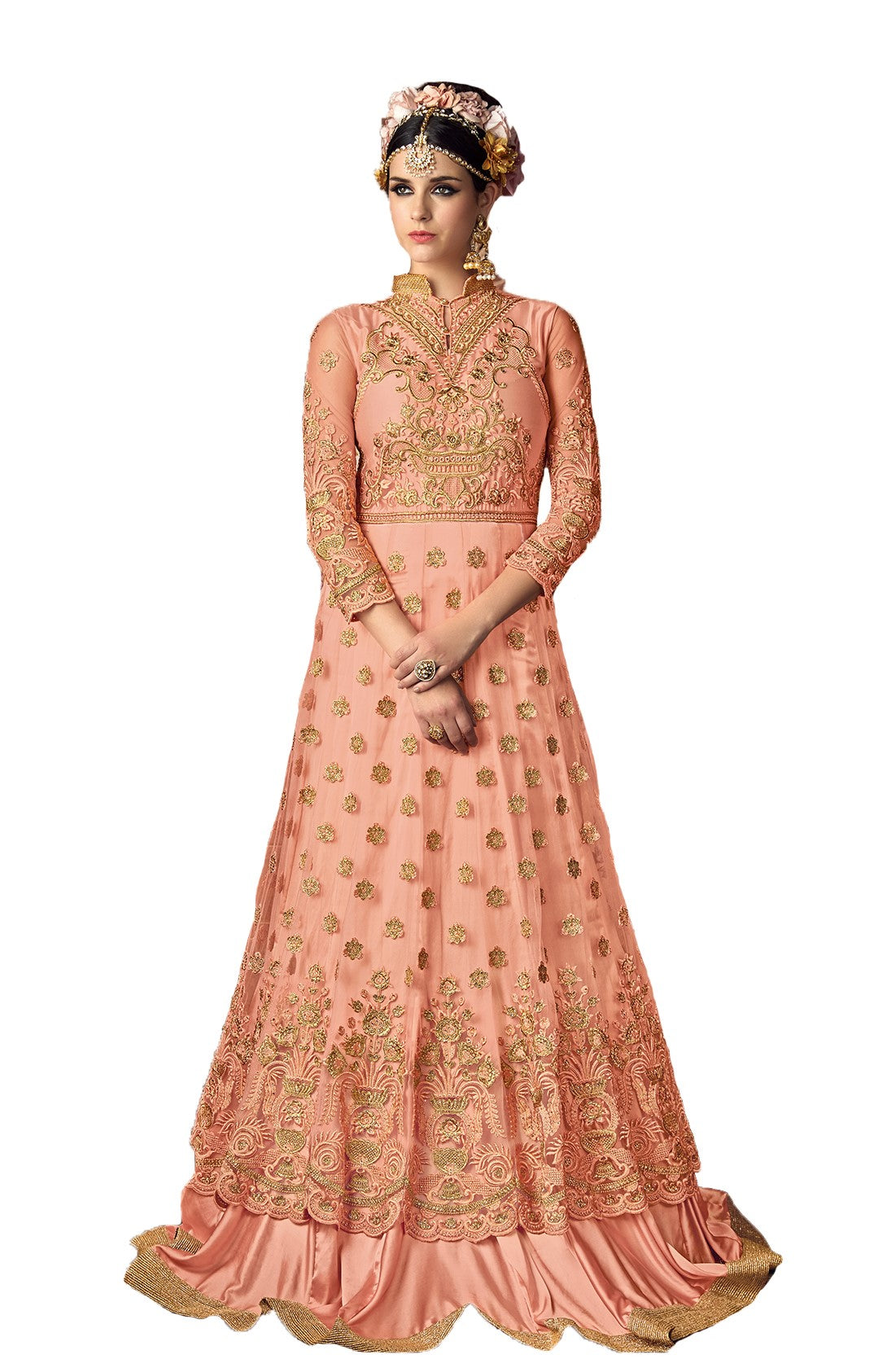 This heavy designer Anarkali Floor Touch Dress/Gown is made of Tapeta