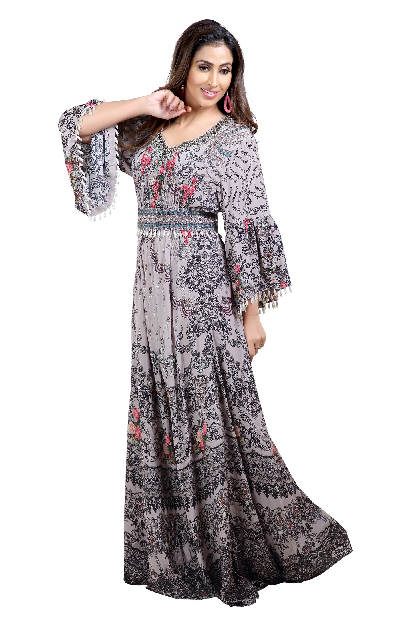 Floral Digital Printed Haute Coutre Kaftan Embroidery |