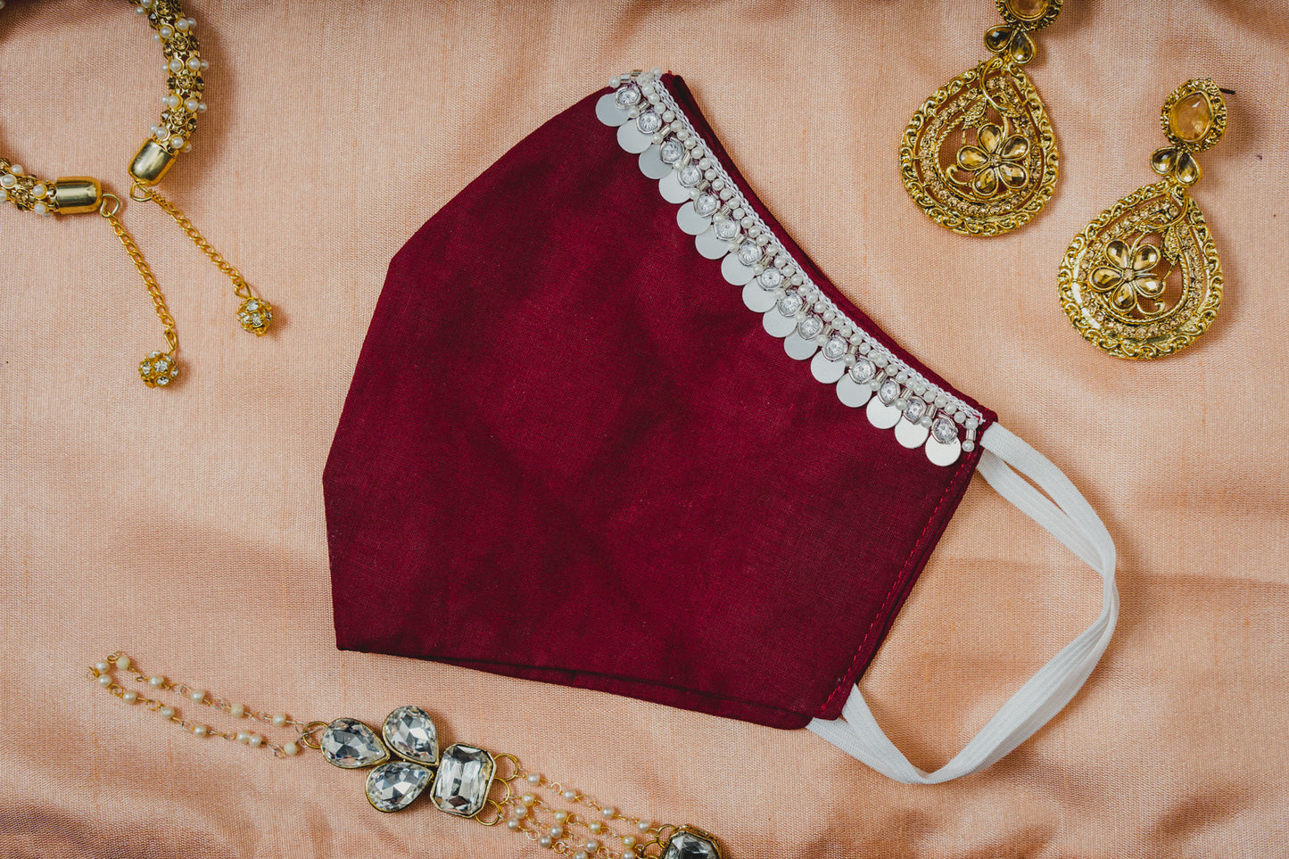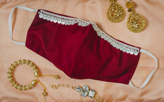 Red Cotton Face Mask with Hanging Tassel Embroidery - Maxim Creation