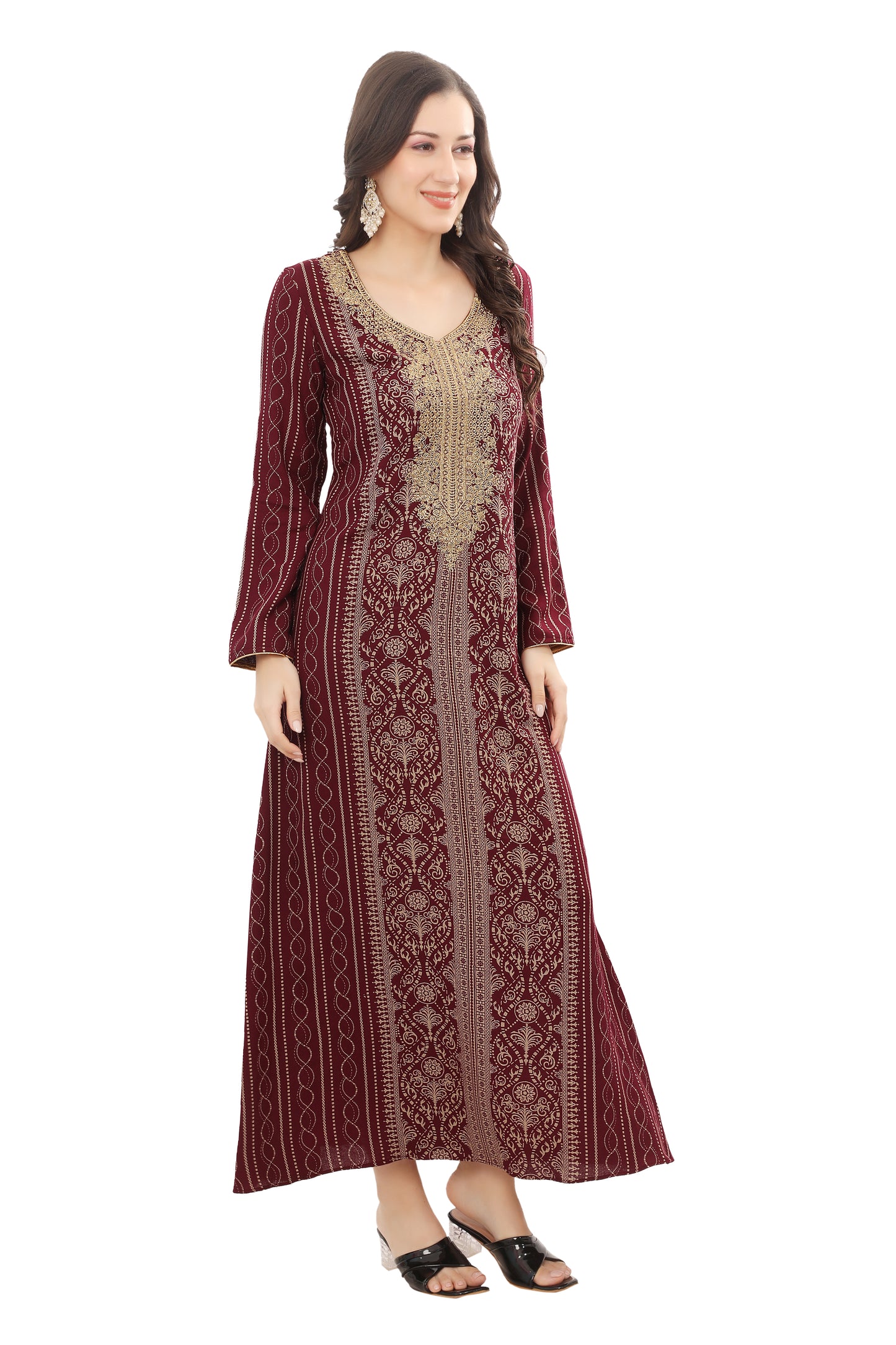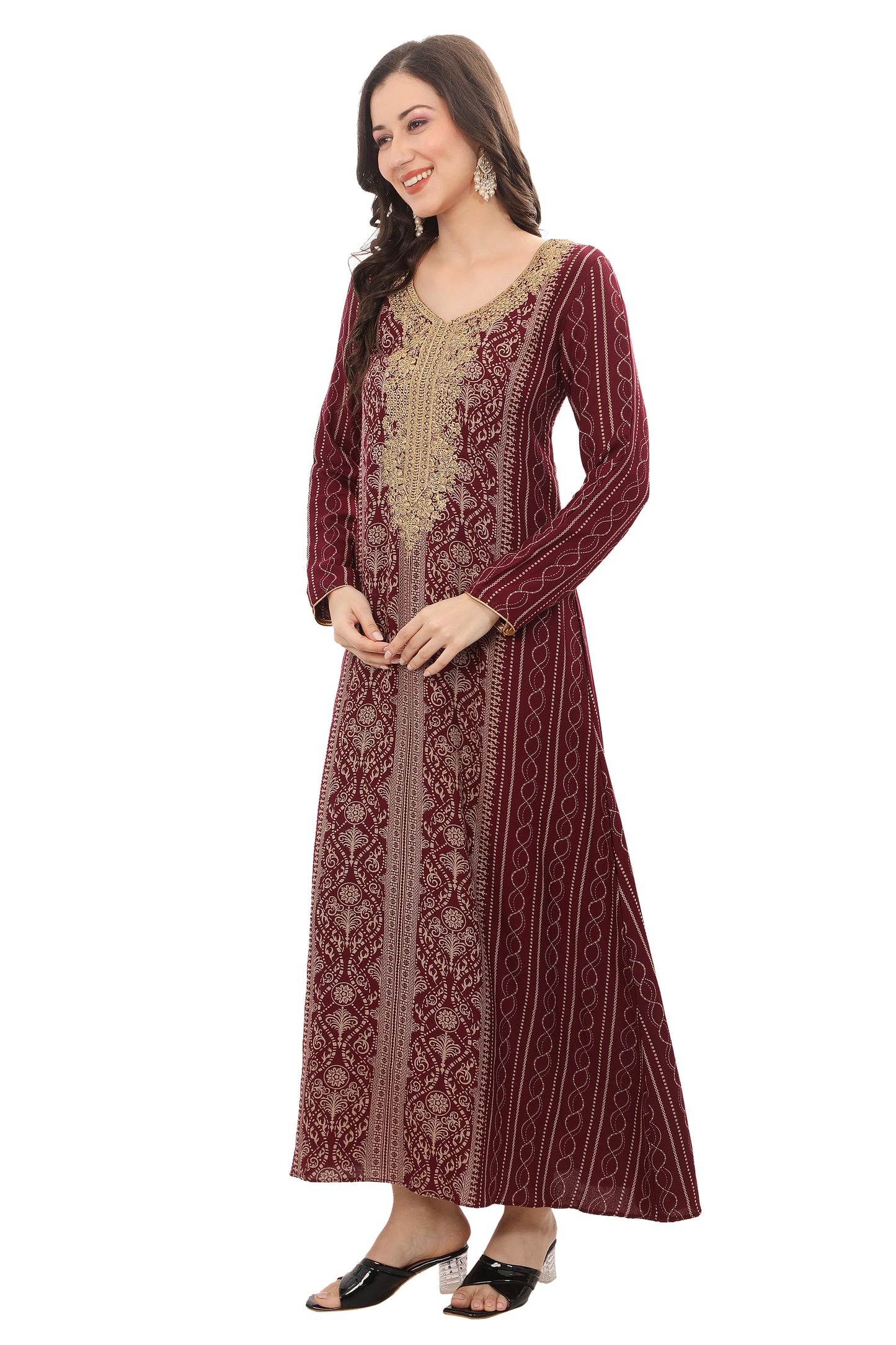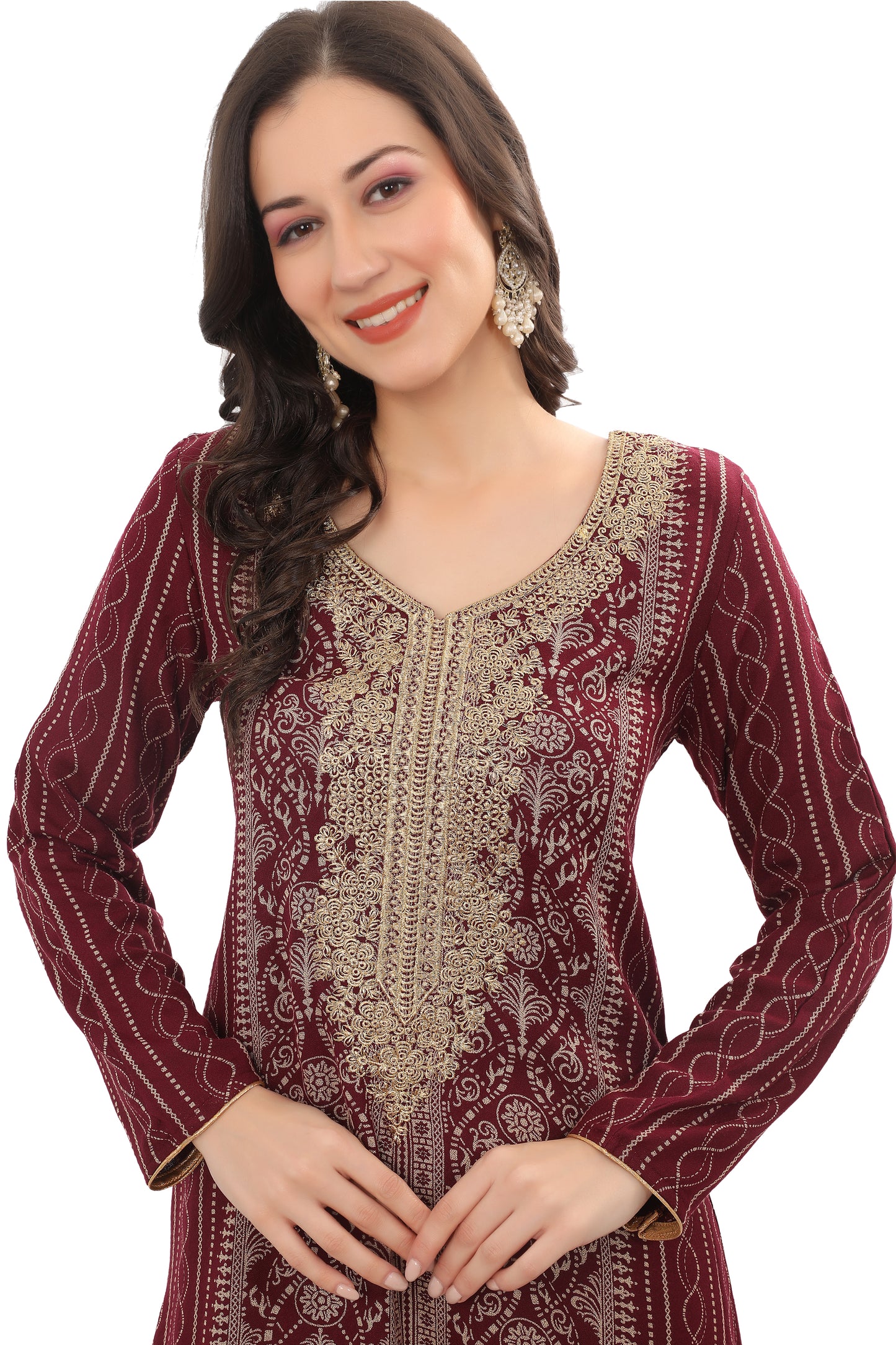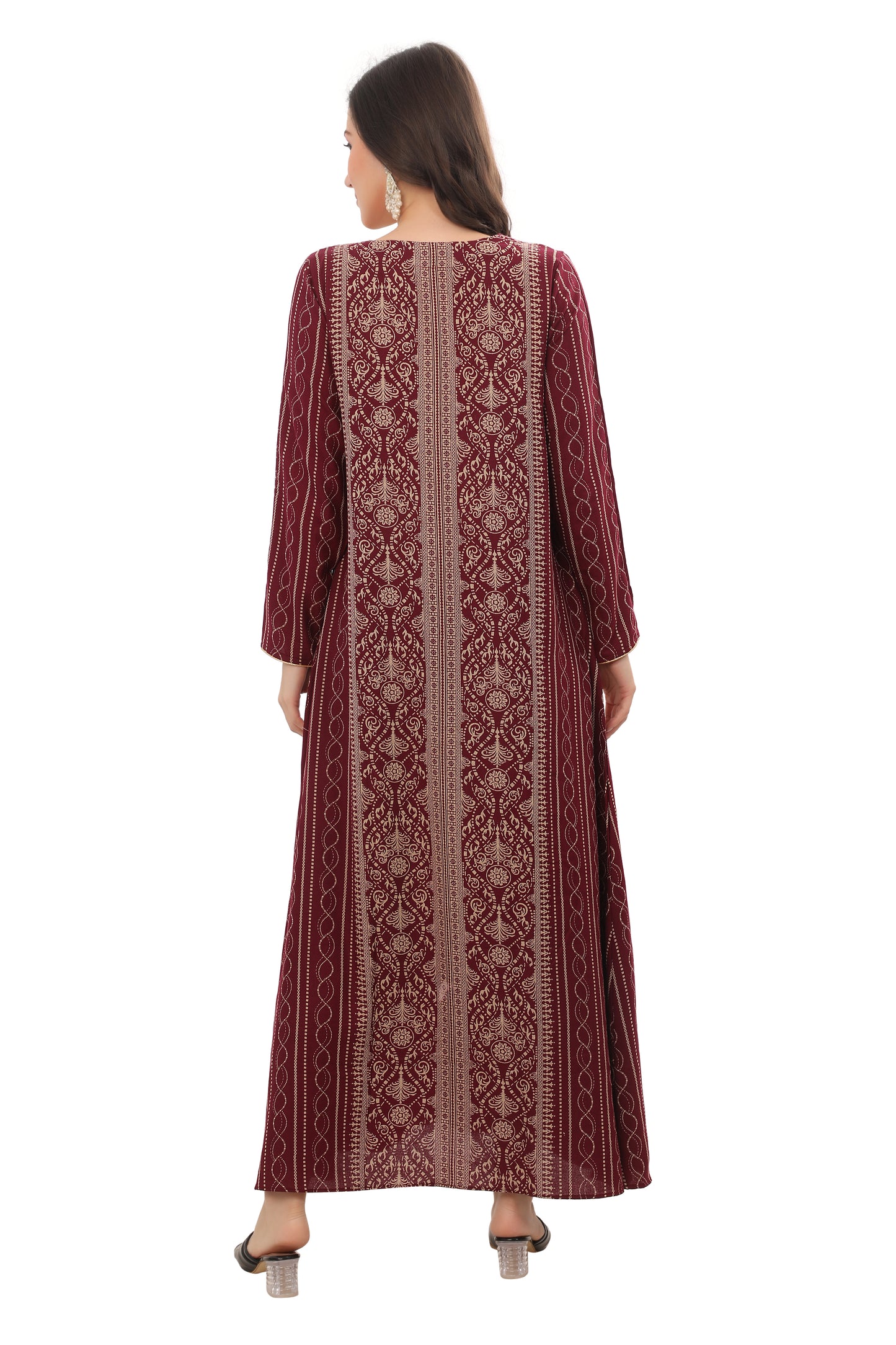 Maroon Alpine Embroidered Jalabiya Kaftan |