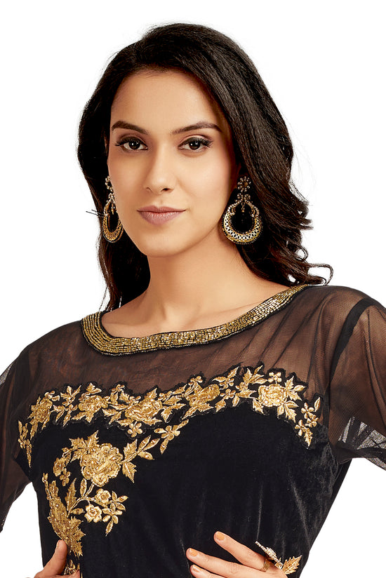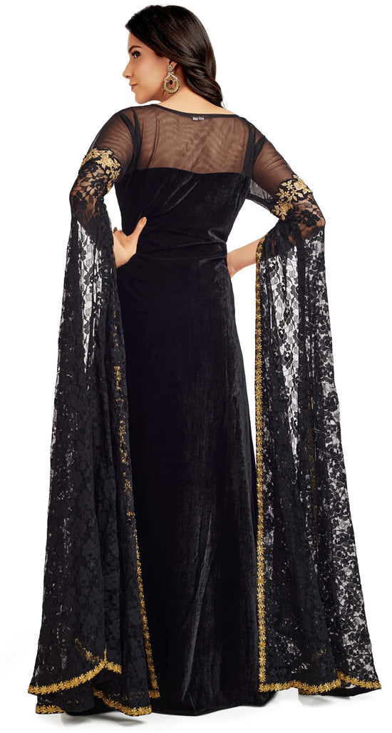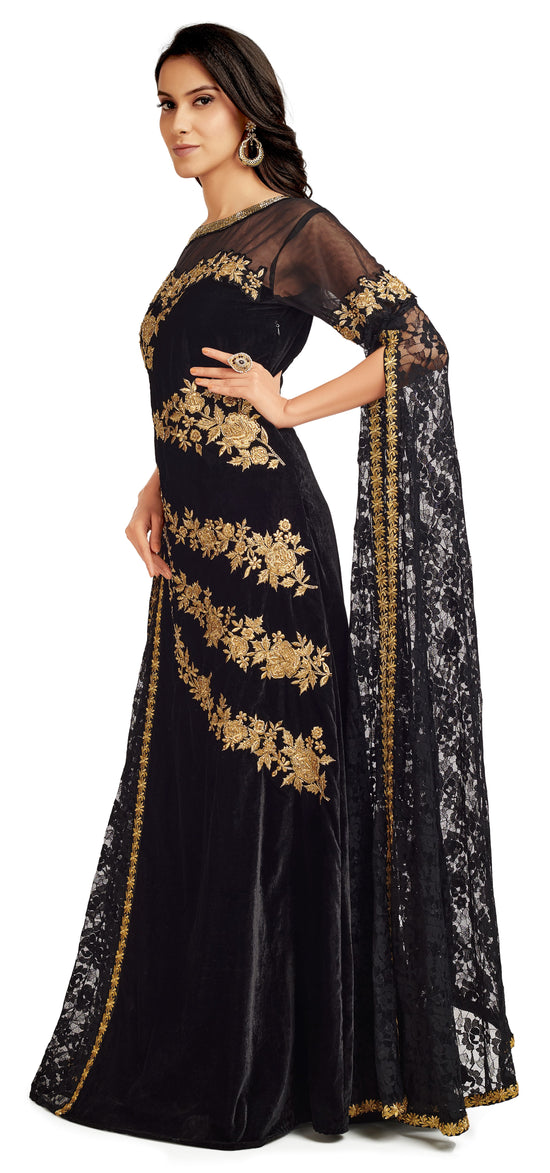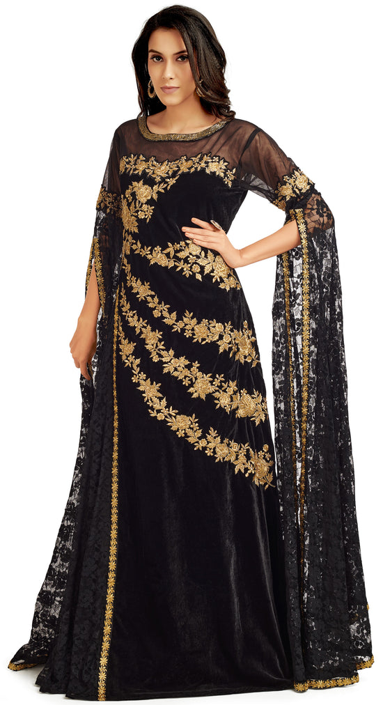 DesignerWear Kaftan Black Velvet Party Gown with Long Sleeve |