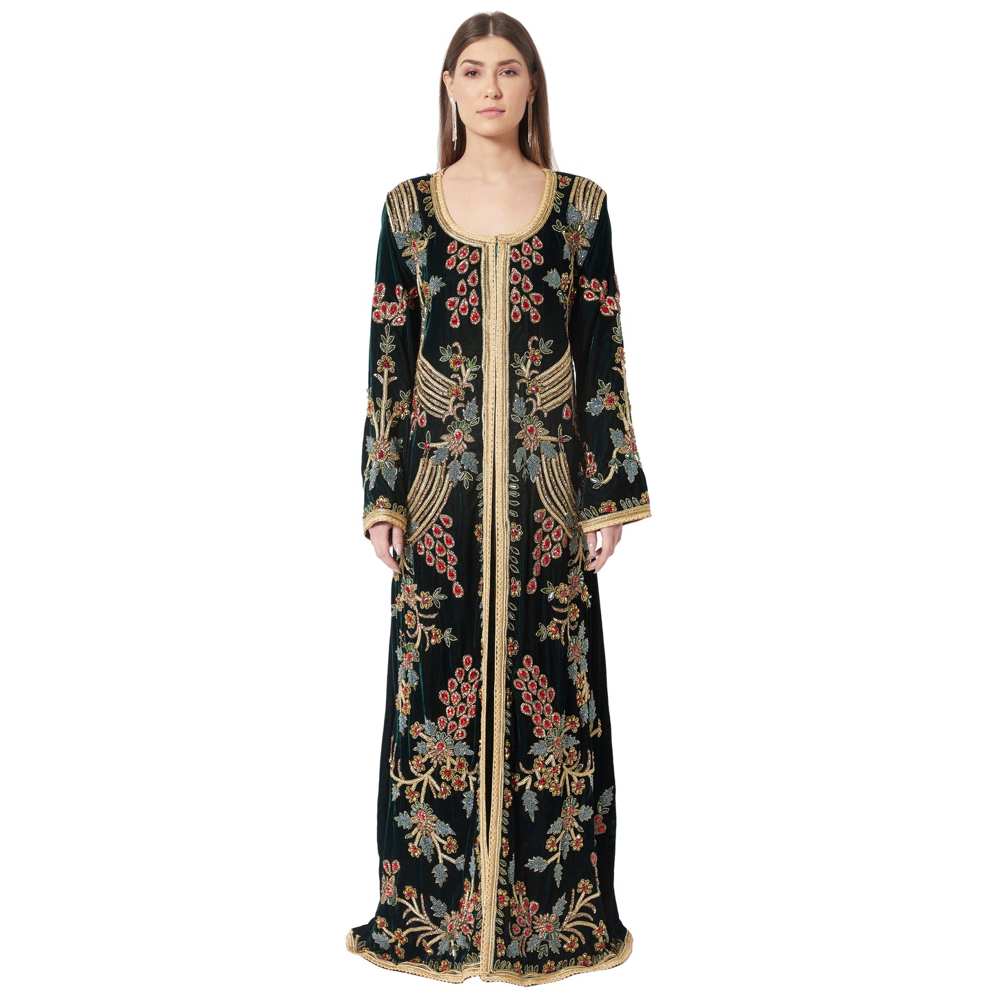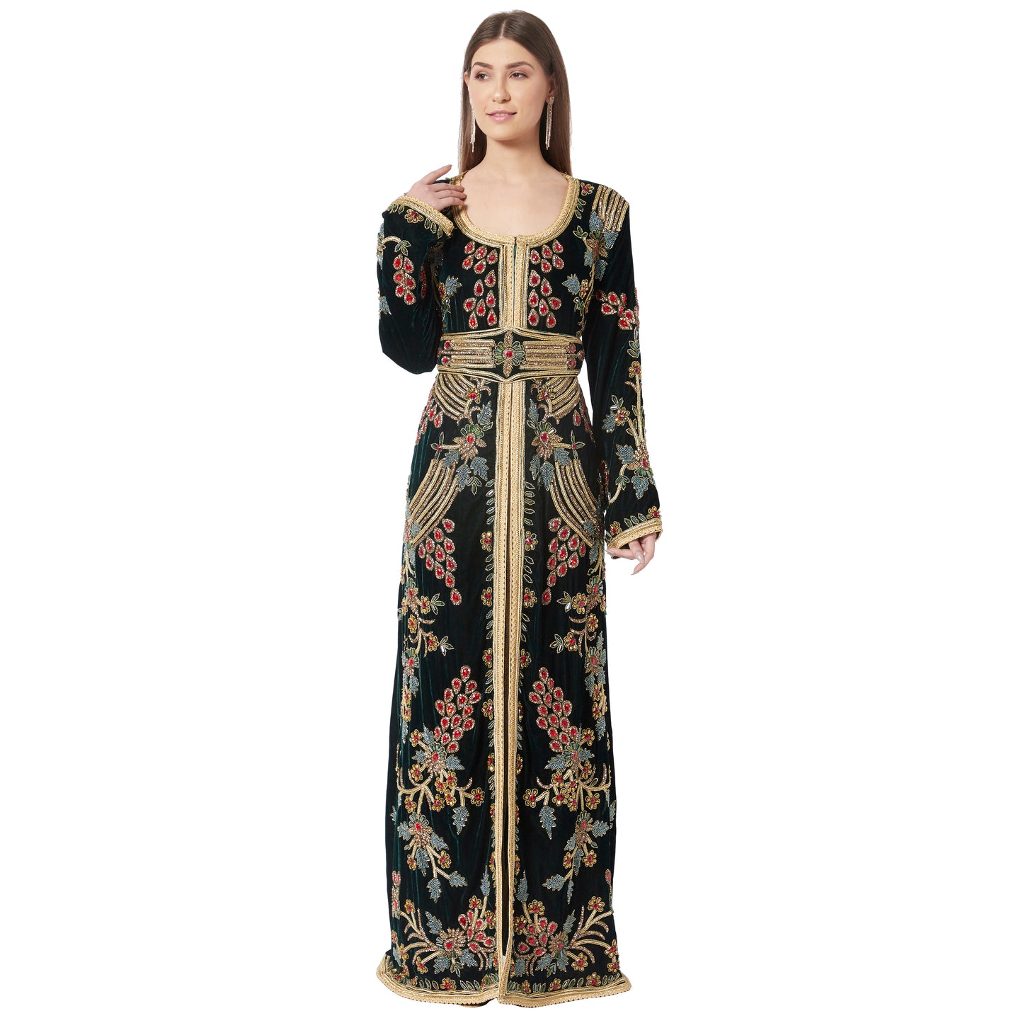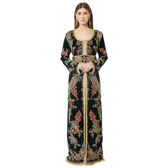 Designer Caftan Wedding Dress Handcrafted with Crystal In Velvet - Maxim Creation