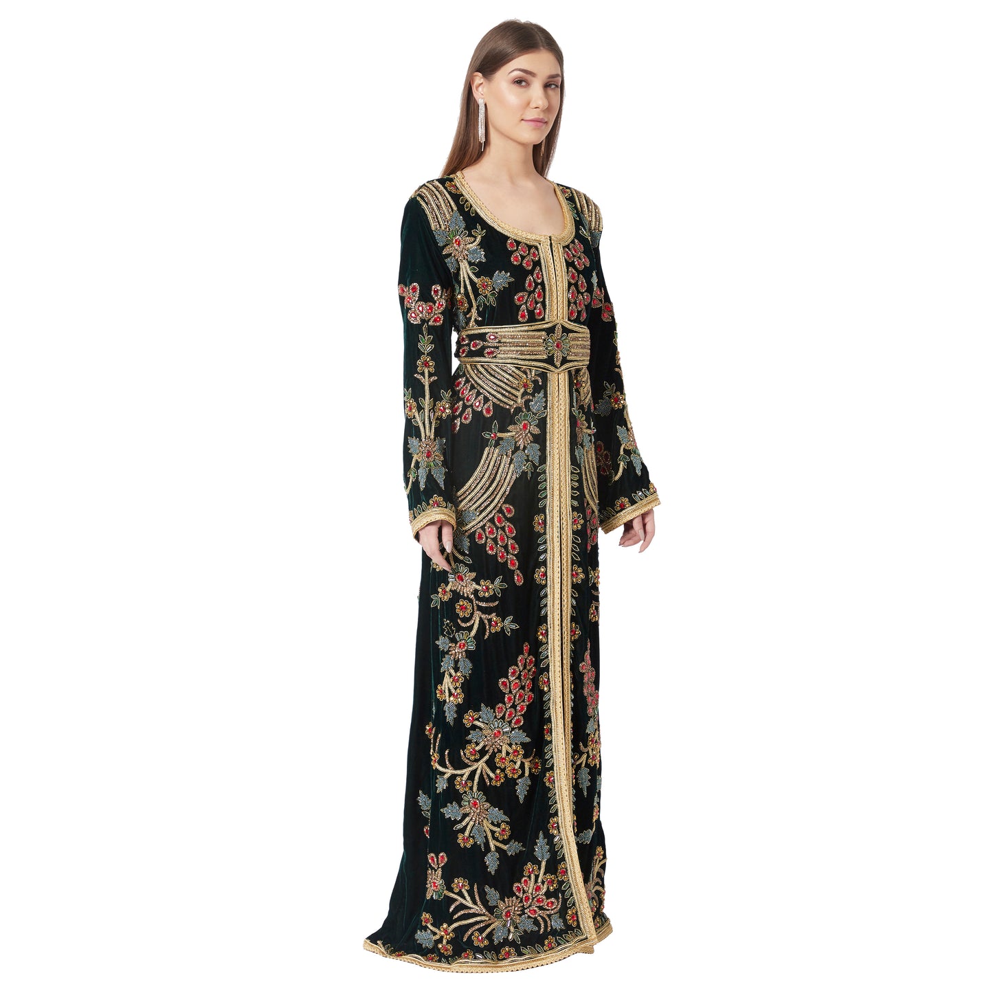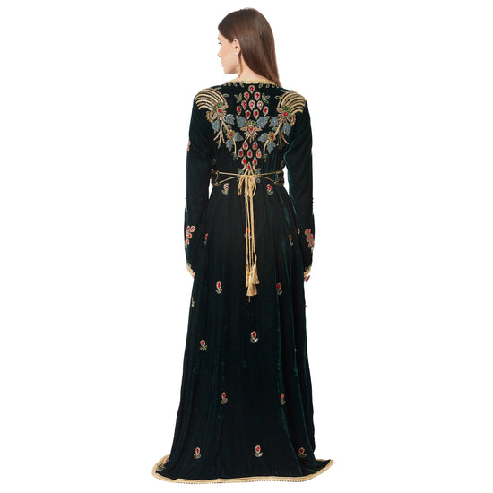 Designer Caftan Wedding Dress Handcrafted with Crystal In Velvet