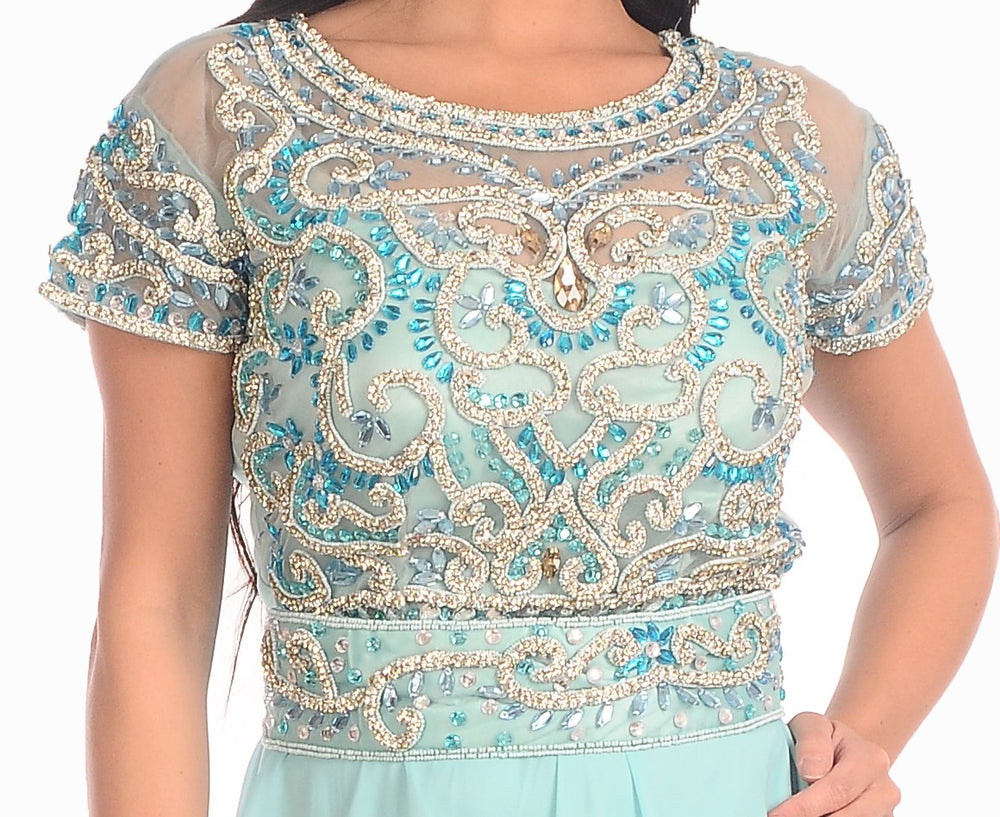 Short Sleeve Prom Dress Sky Blue Maxi |