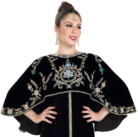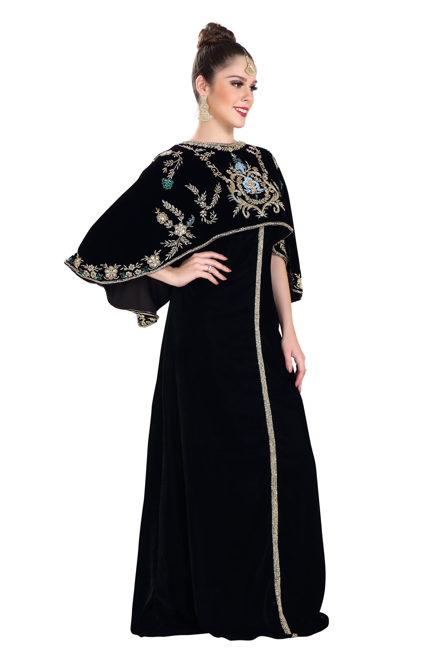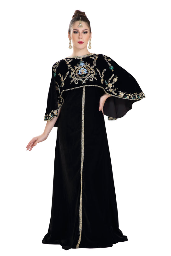 Arabian Kaftan Velvet Fabric with Colorful Crystal Embroidered Dress - Maxim Creation