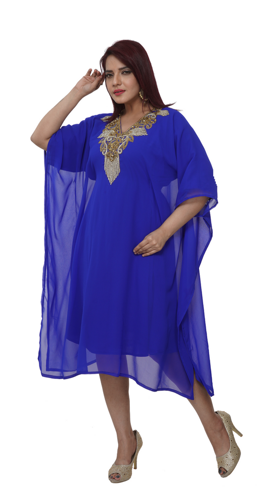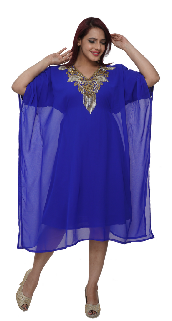 Exclusive boho dress comes with a half sleeves and is a V – neck design. Golden and silver embroidered are used to give you a stylish look. Mainly done by our expert designers and artisans which will be perfect for your significant occasion. This dress comes as a 1 piece set. |