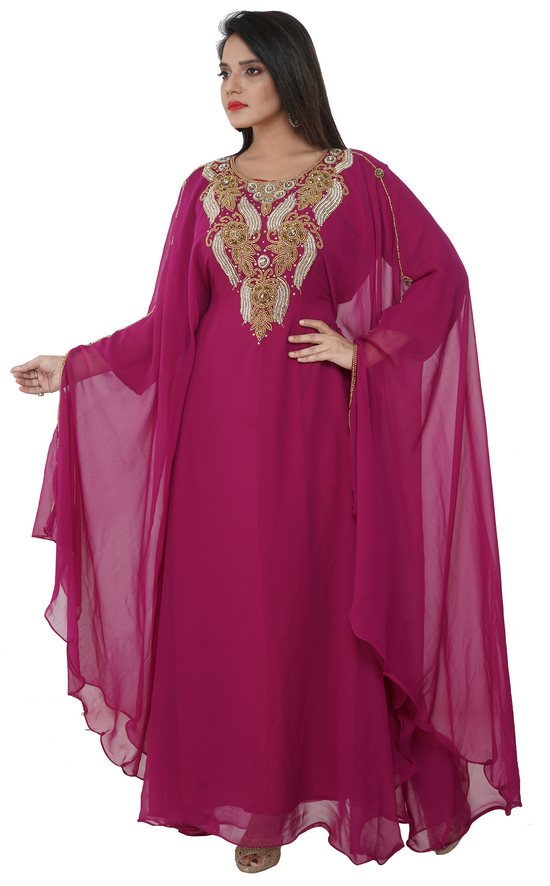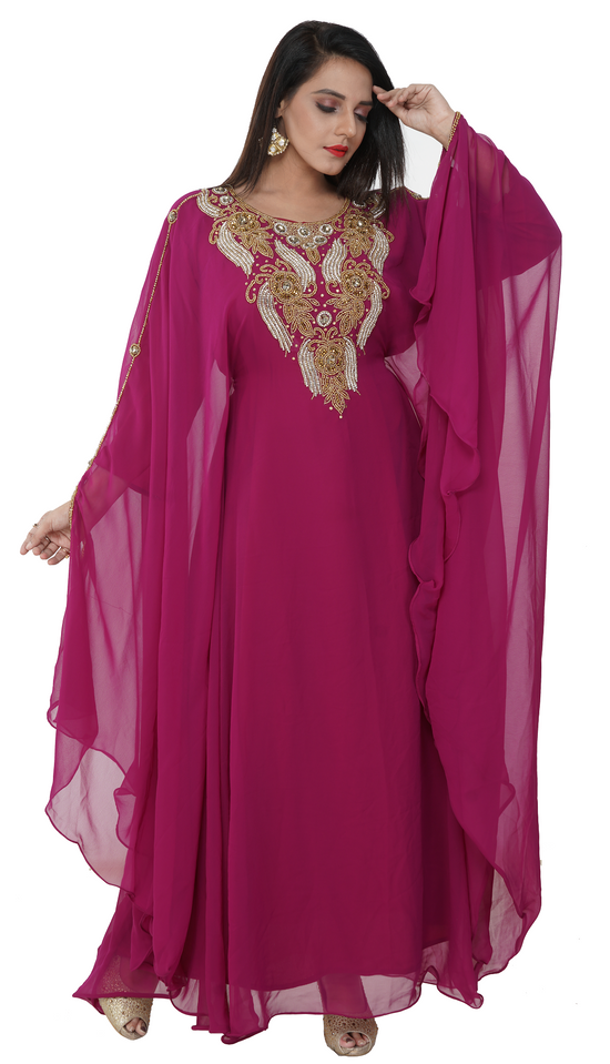 Glamour your look with this burgundy dress. This dress comes with golden floral hand embroidered work to make you look as a showstopper in the party, it has a boat neck design with full sleeve. This 1 pieces set is all that you need! |