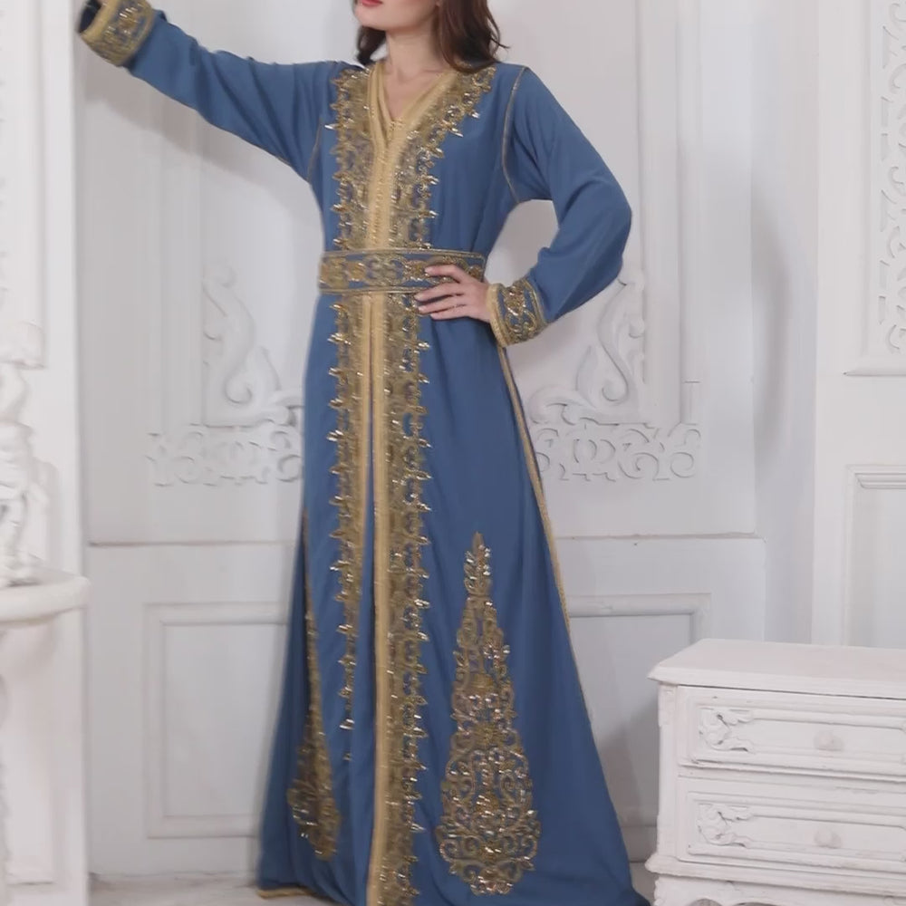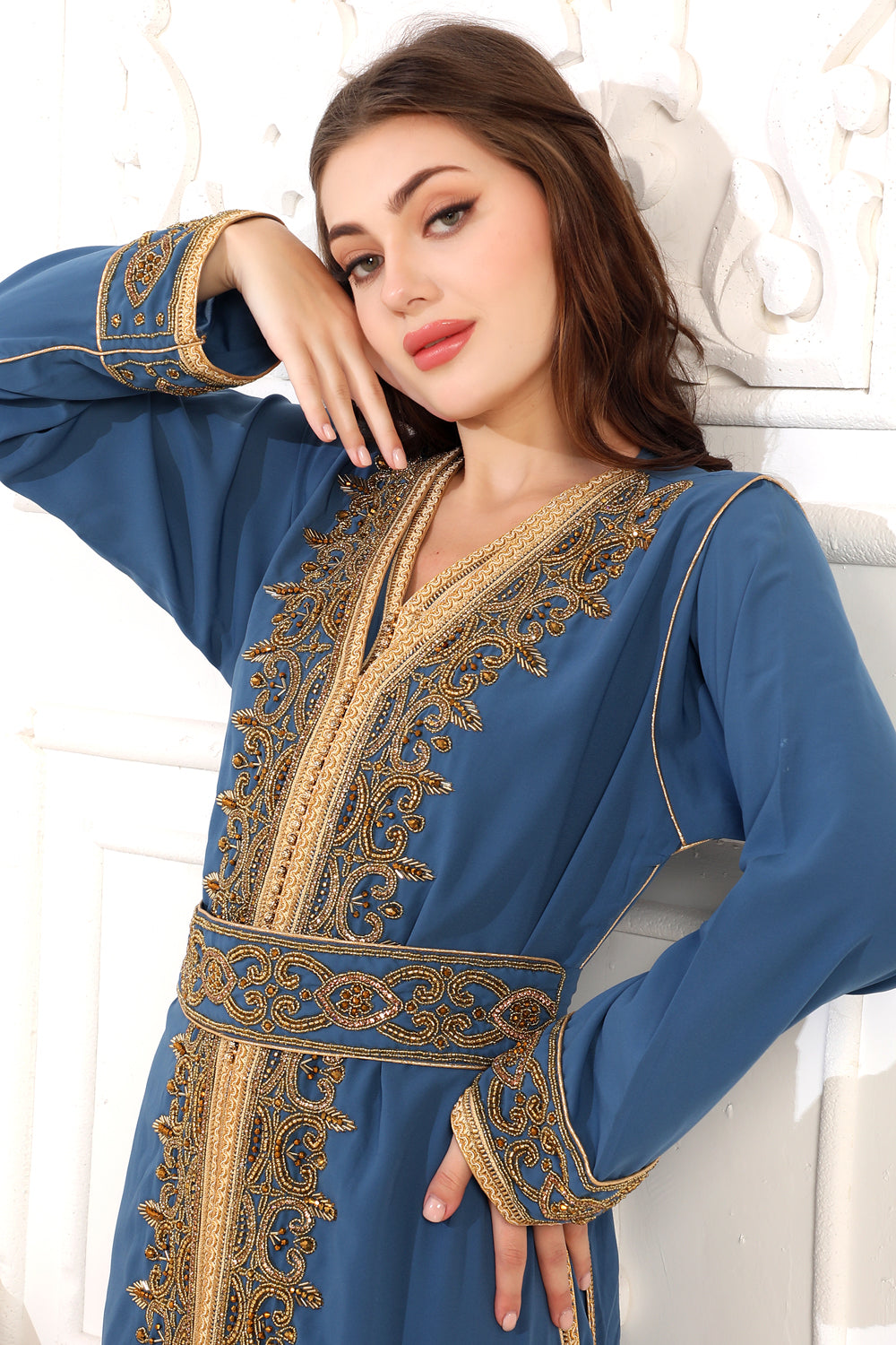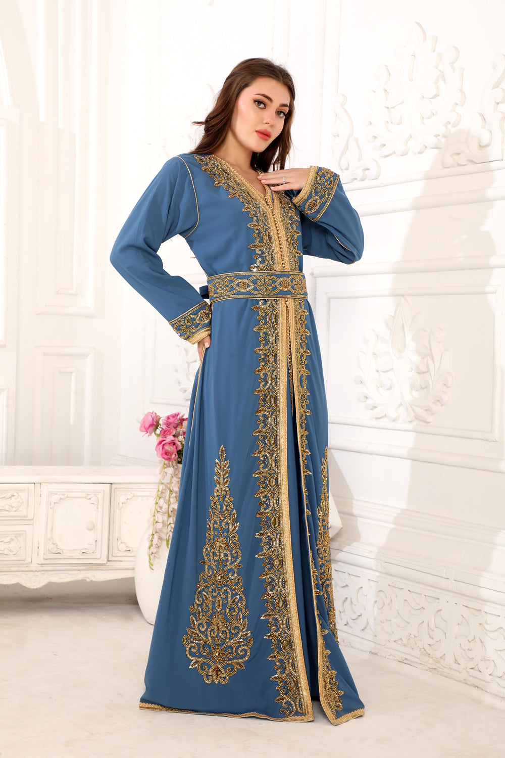Crystal Embroidery Moroccan Caftan Takchita in a 3 Piece set with Belt