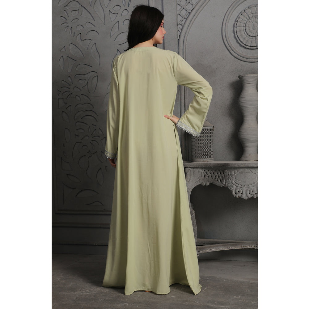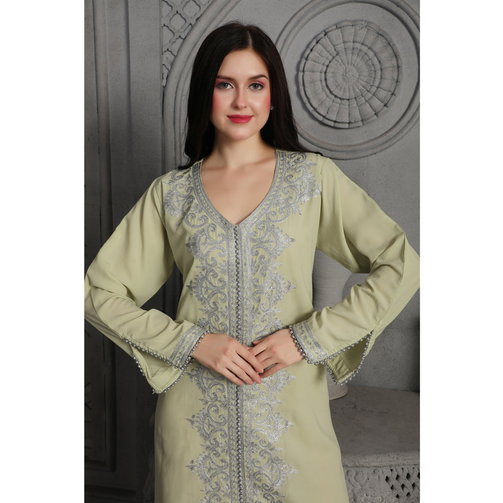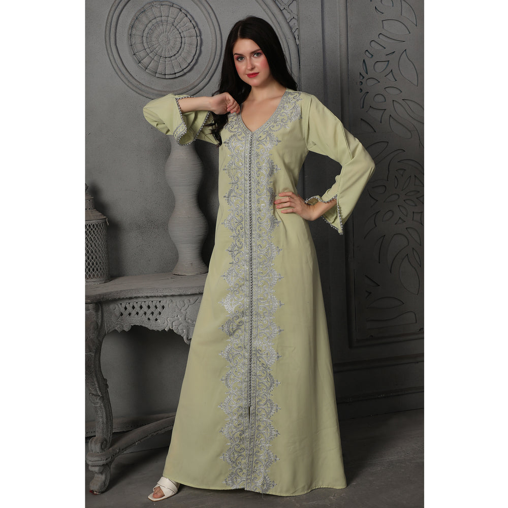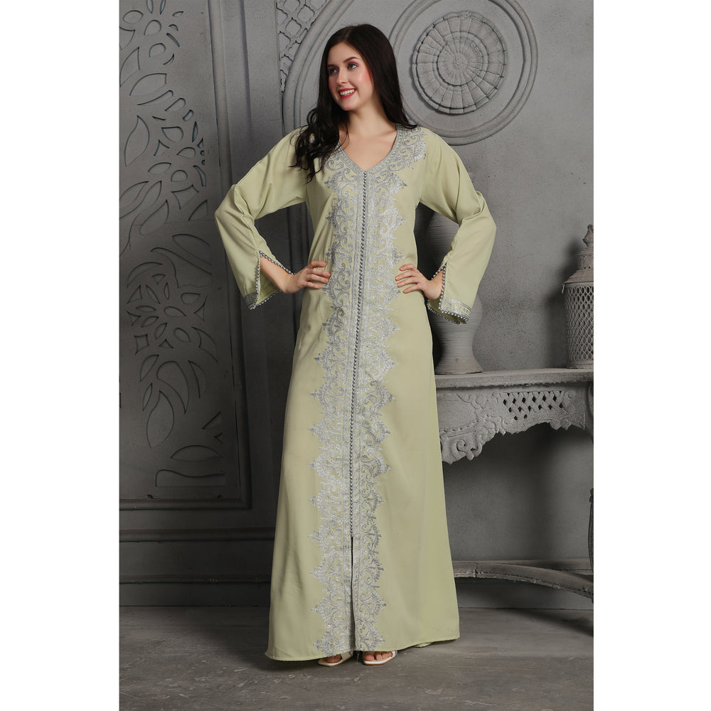 Intricate Silver Embroidery Dubai Kaftan Arabic Dress |