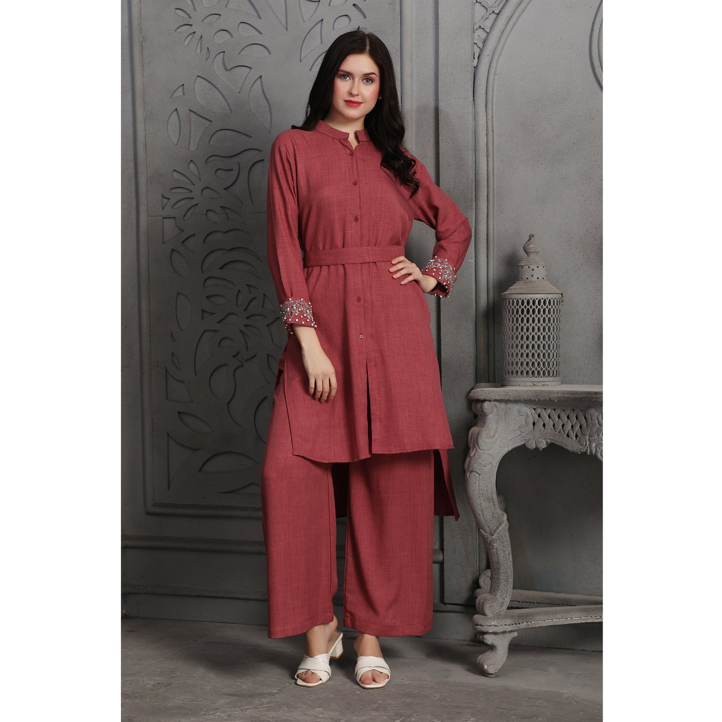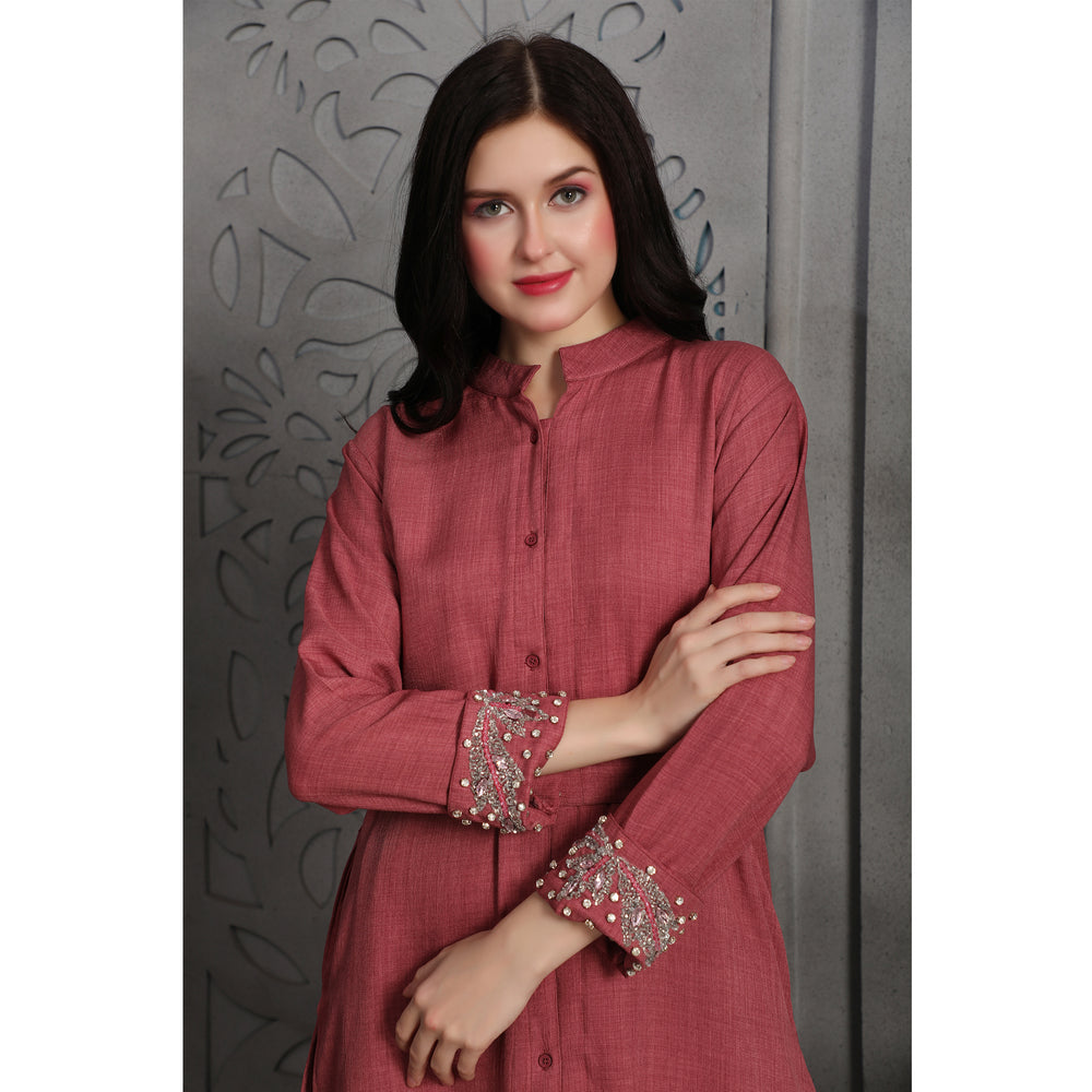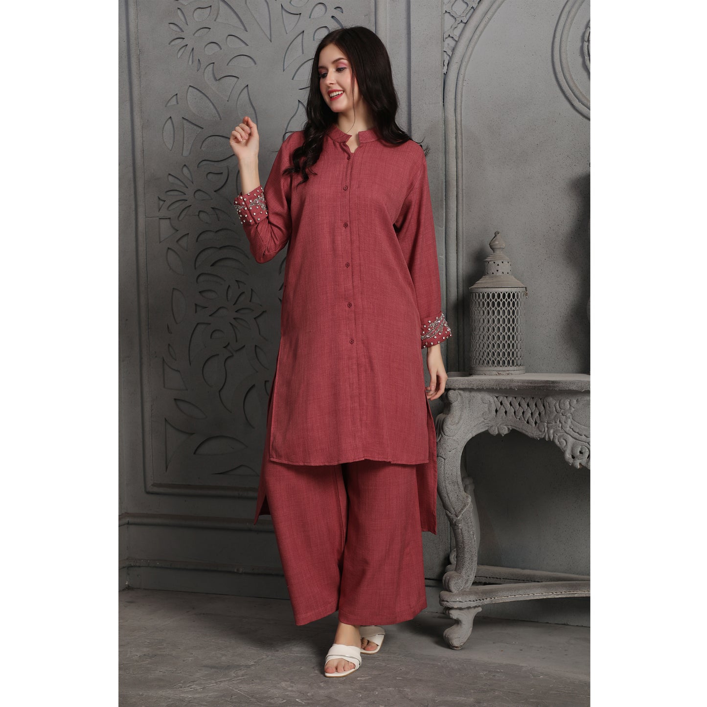 Modest Co-ord Set in Magenta Pink with Hand Embroidery