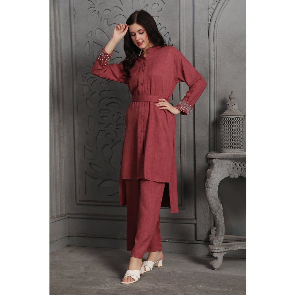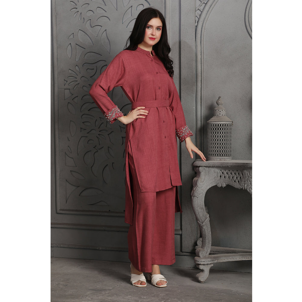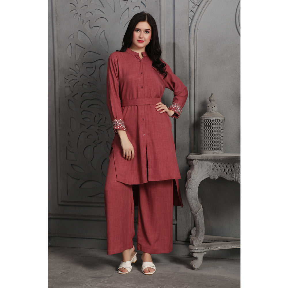 Modest Co-ord Set in Magenta Pink with Hand Embroidery