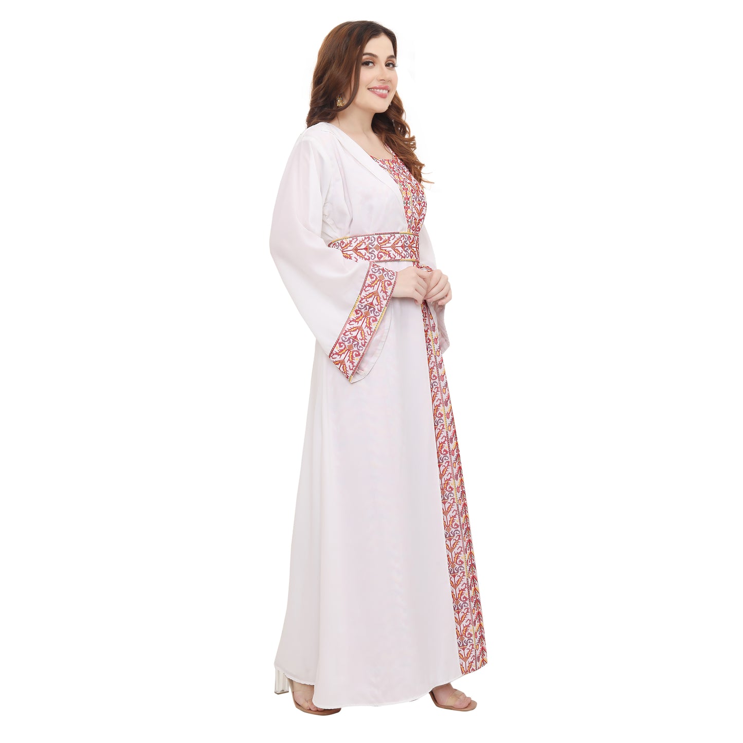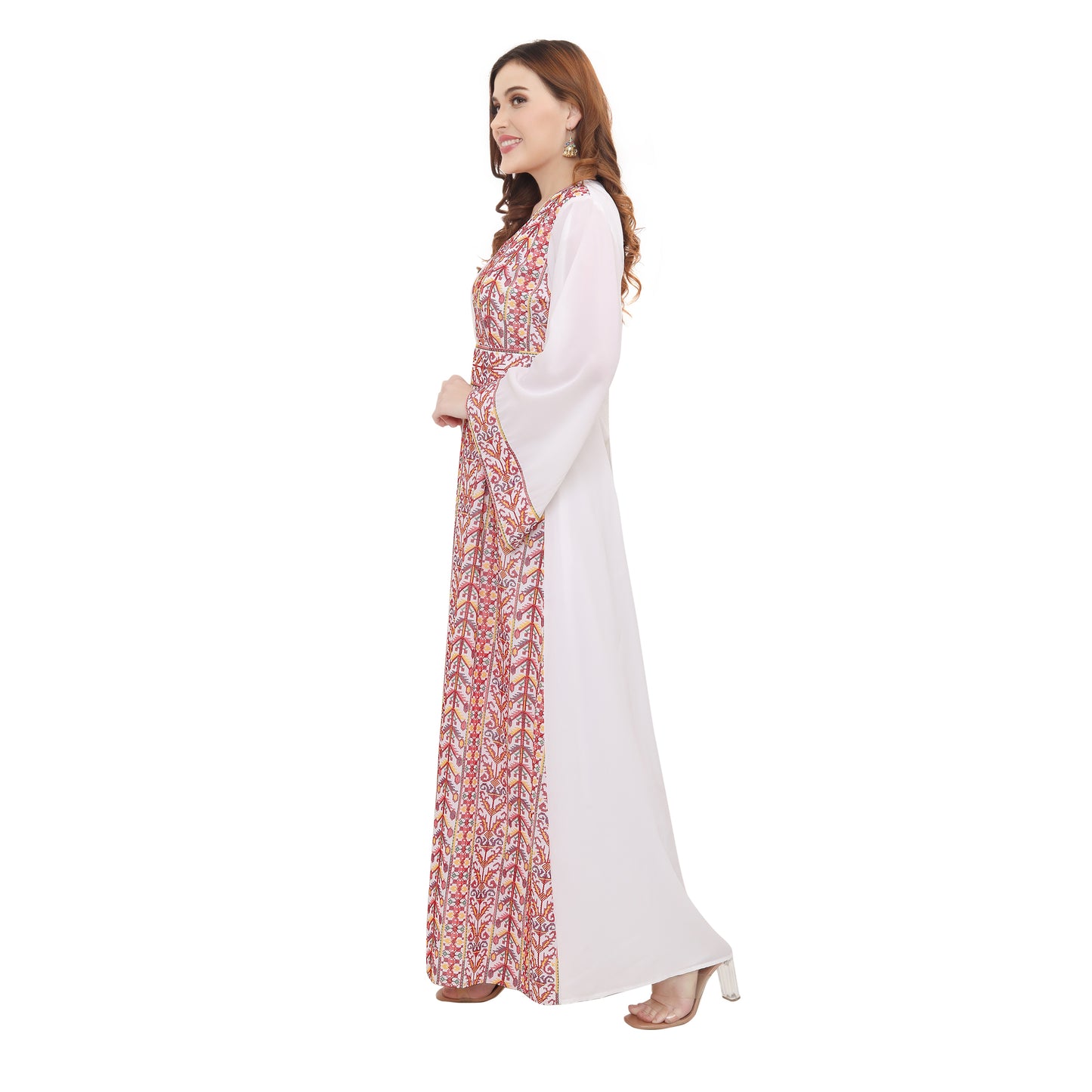 Palestine Dress Pink Cross Stitch Threadwork Kaftan