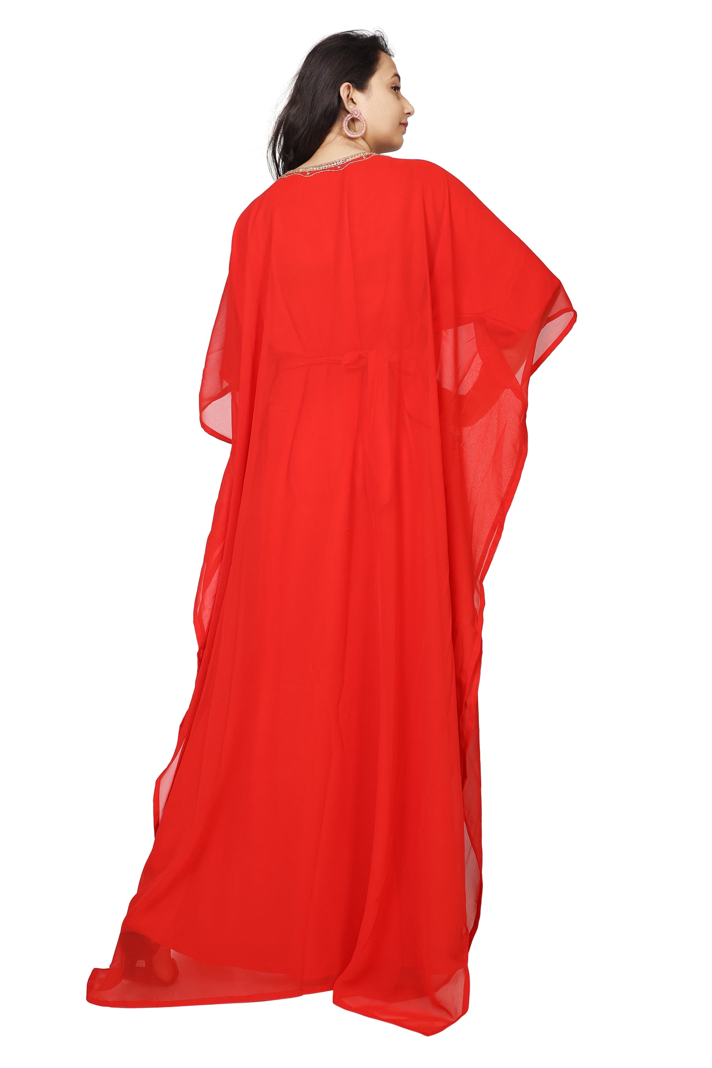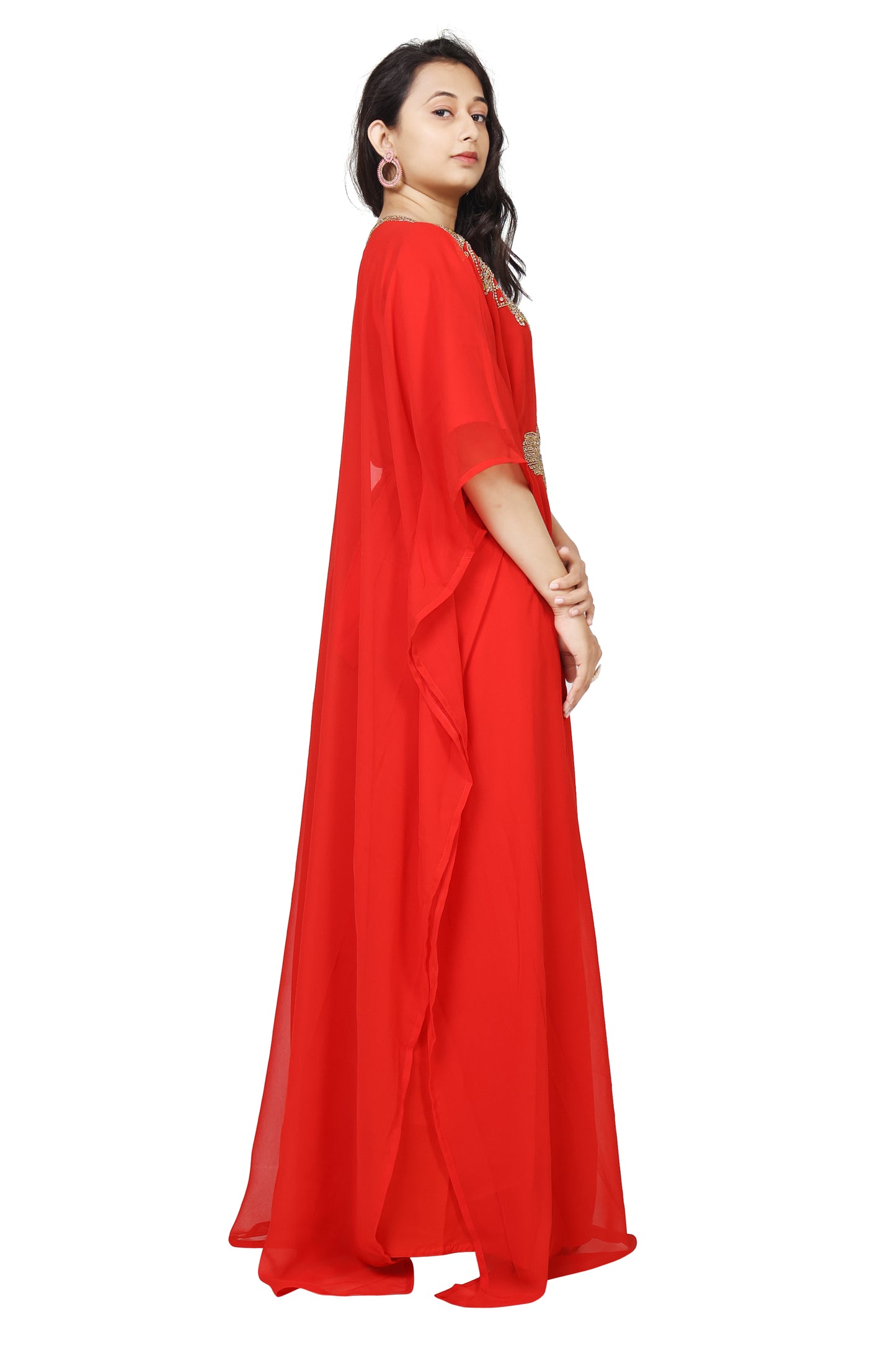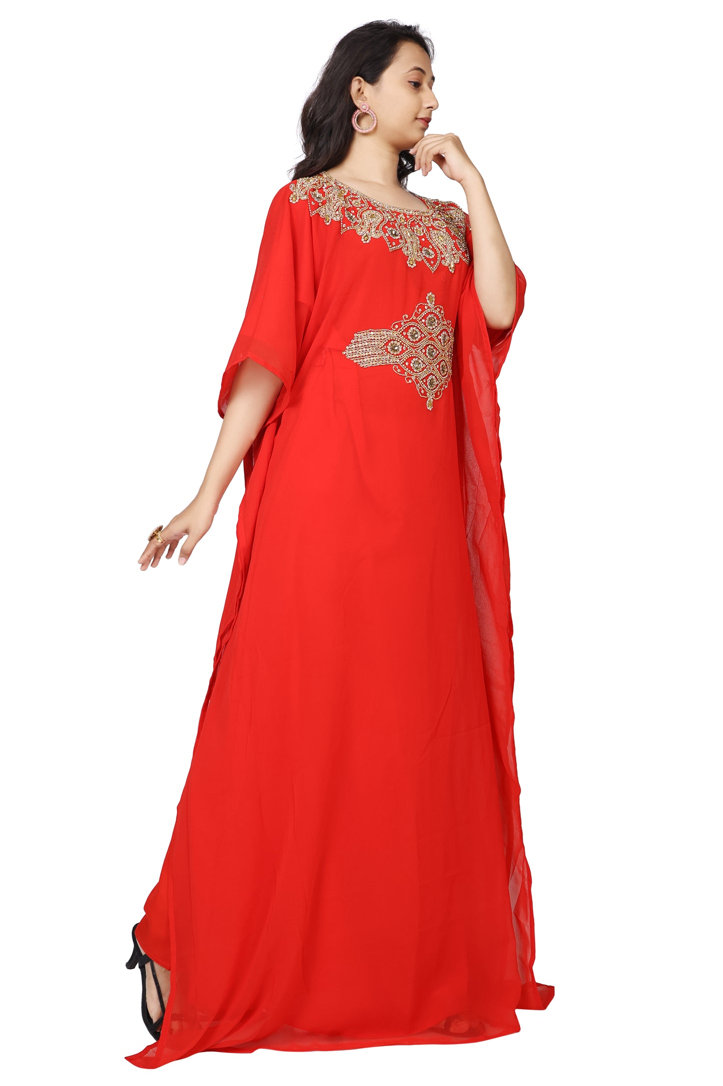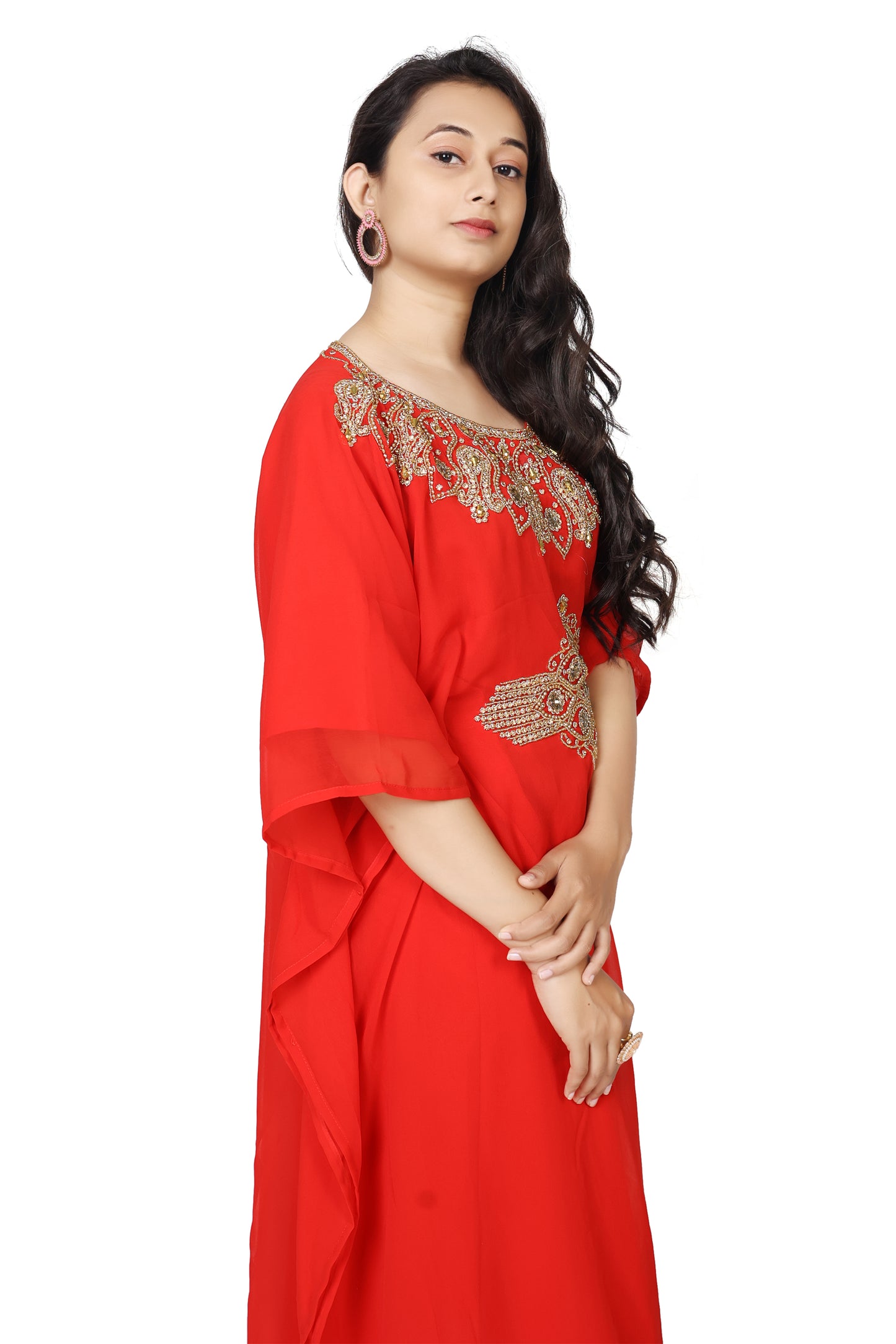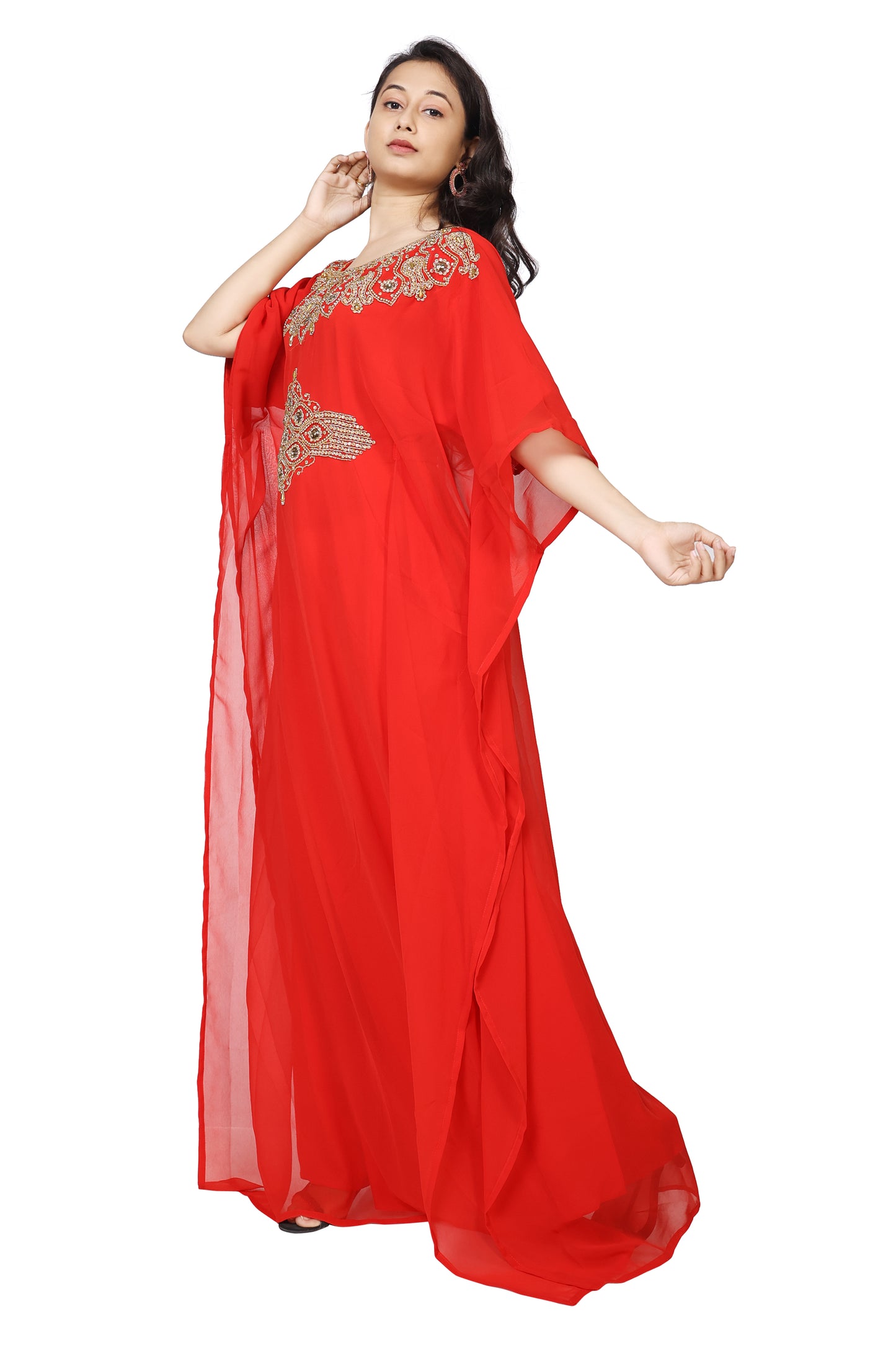 Arabian Farasha Red Kaftan Long Maxi Party Gown