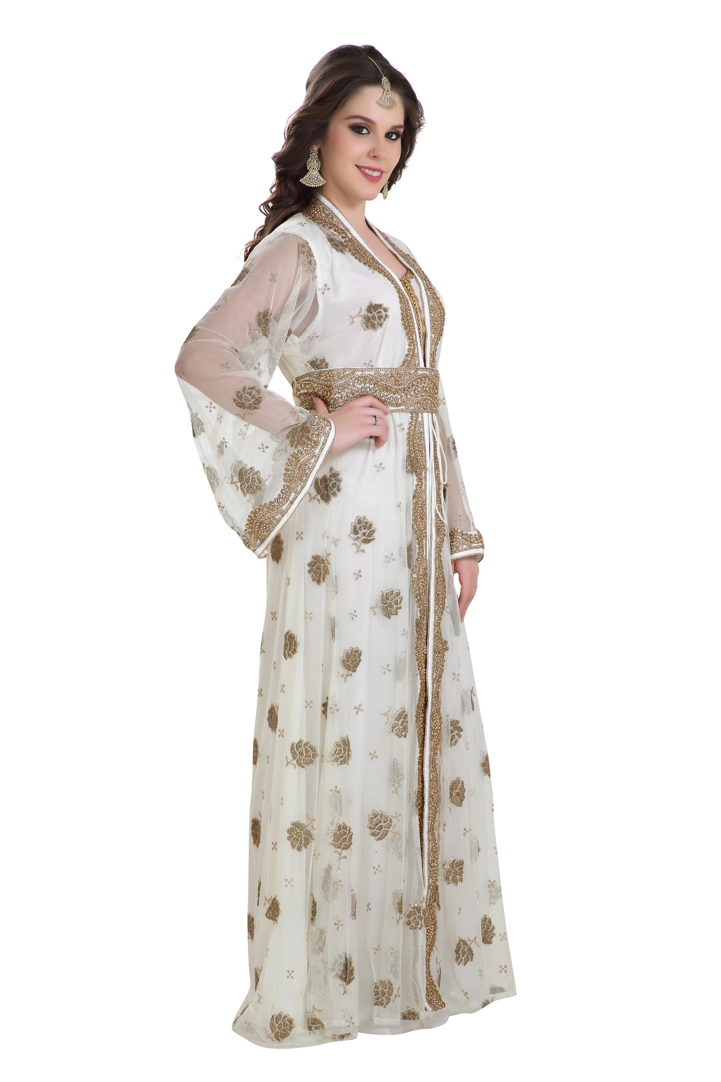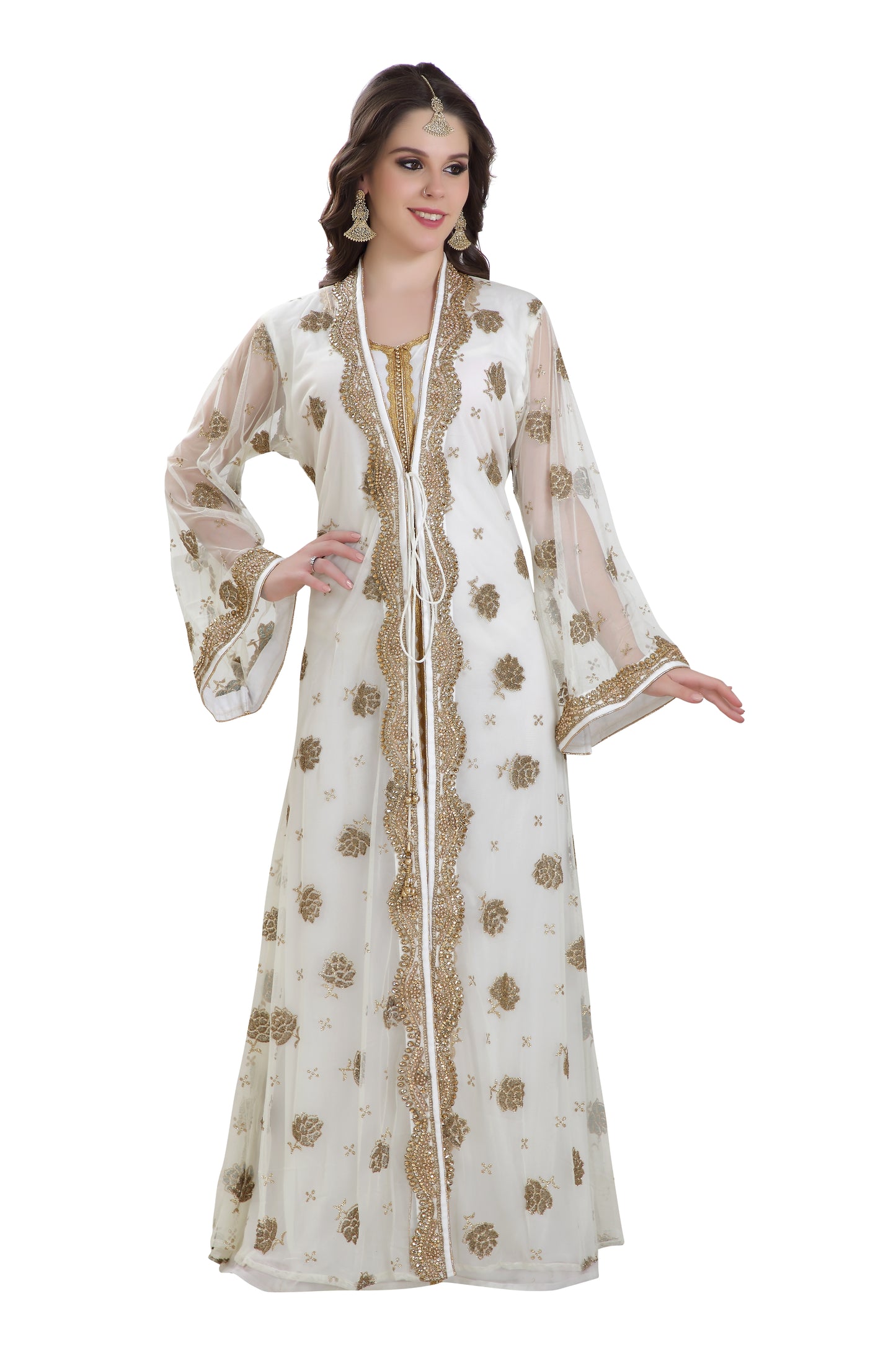 Arabian Kaftan Golden Embroidered Dress - Maxim Creation
