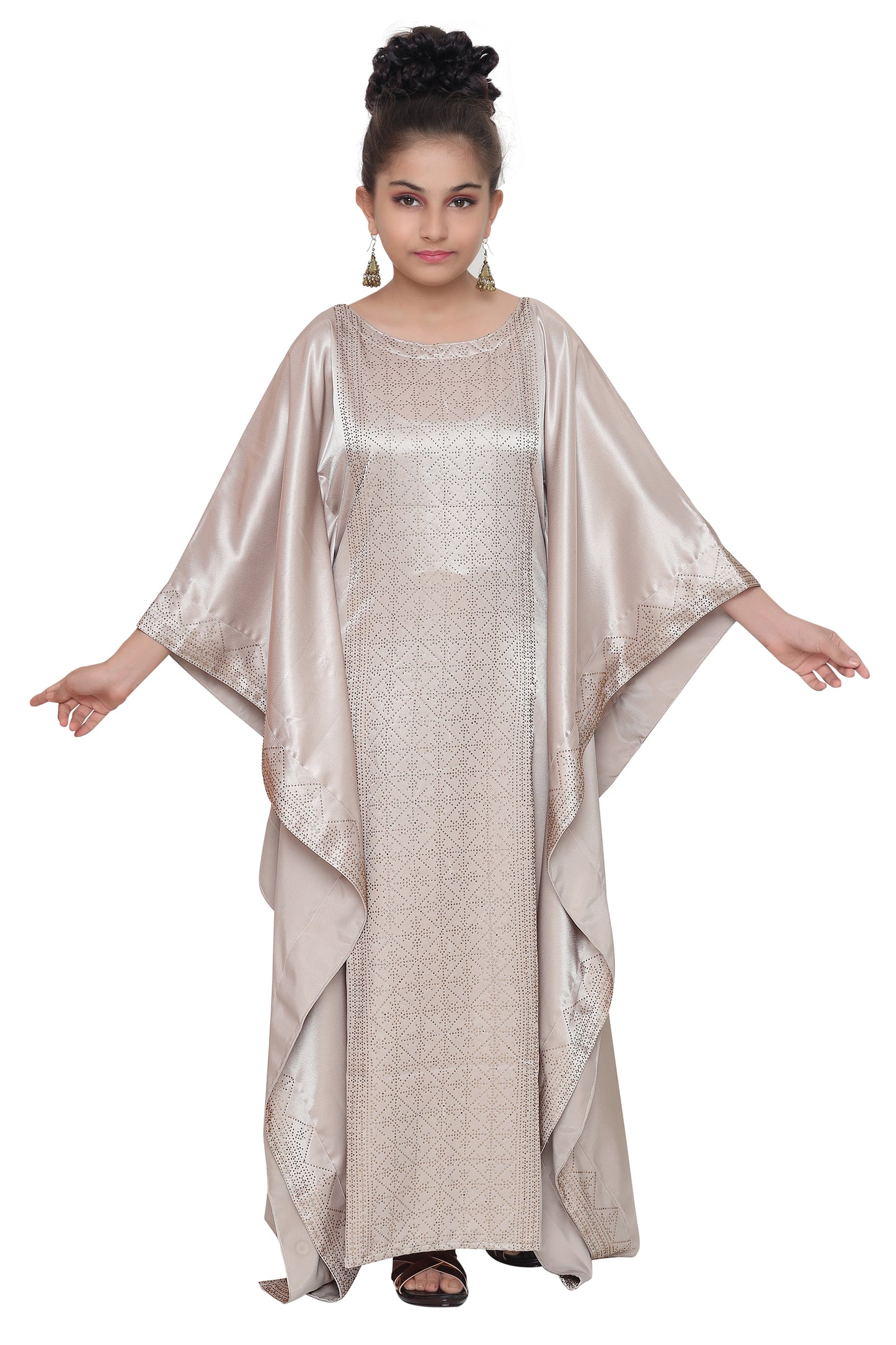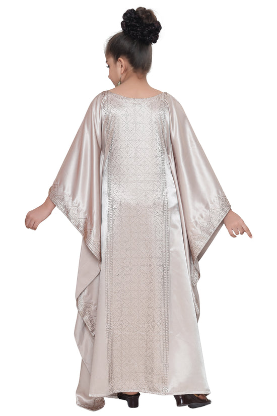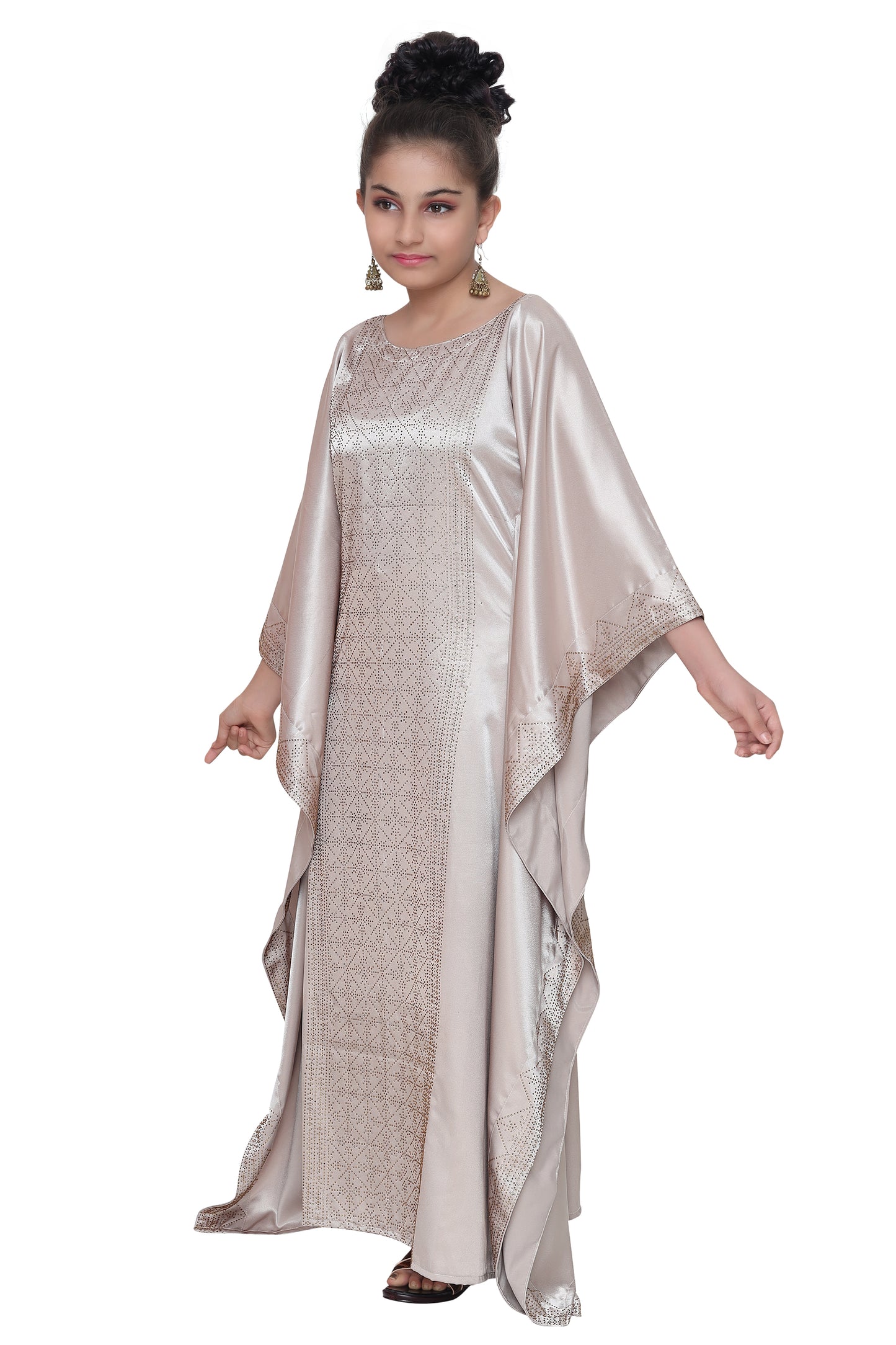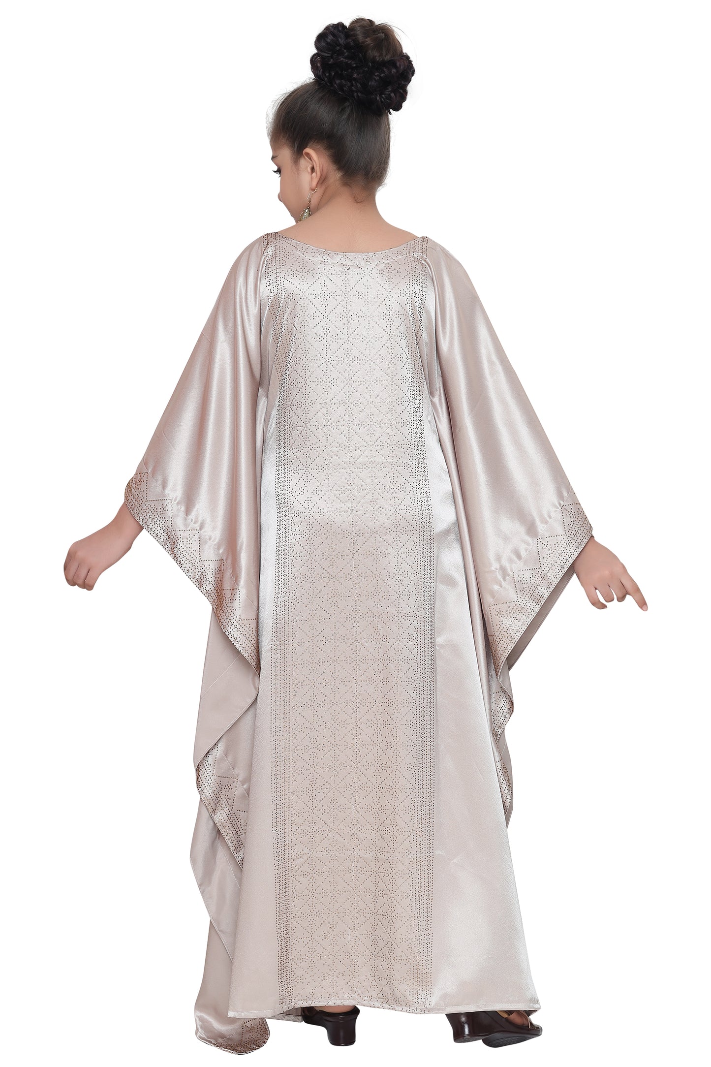 Beige Satin Maxi Dress For Kids - Maxim Creation