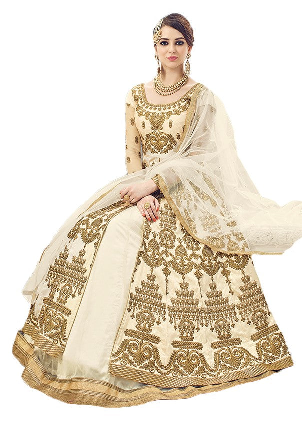 Embroidered Ball Gown in Cream Full Work Sharara 207