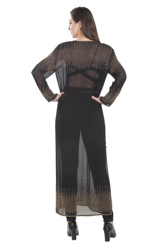 Embroidered Cardigan Long Sleeve Kurti Dress