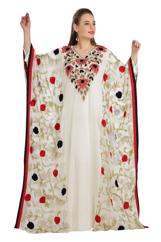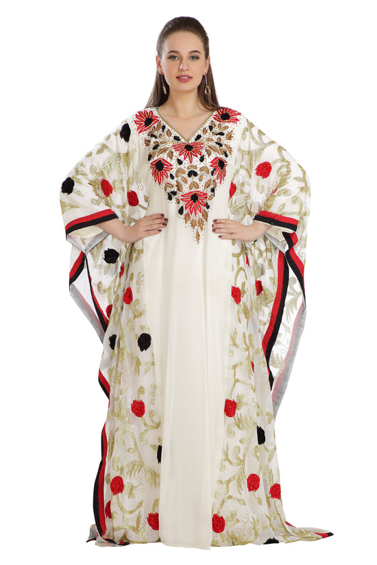 Embroidered Farasha Maxi in Red and Black Flowers - Maxim Creation
