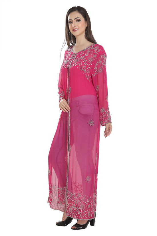 Embroidered Kurti With Crystal Overcoat Long Maxi Dress |