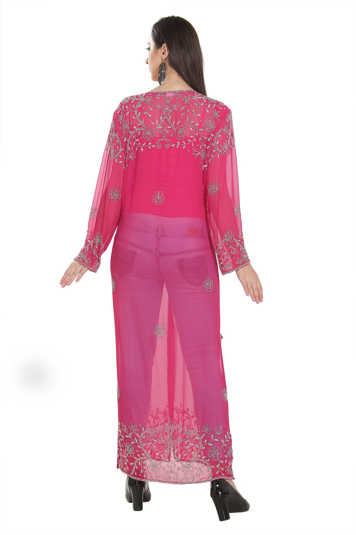 With 17 color options, crystal embroidery overcoat gives you the best look and special glamour. Turn the head of anyone you come across with this pink georgette kurti dress. It comes as a full sleeve with jacket, and the minimum order quantity for this piece is one. Your comfortability and confidence in your appearance is sure with this stunning piece. Contrast your appearance with this maxim creation’s collection. This georgette fabric kurti dress is 1 piece set (jacket only) & full sleeve dress (this dress does not have lining from the inside. |