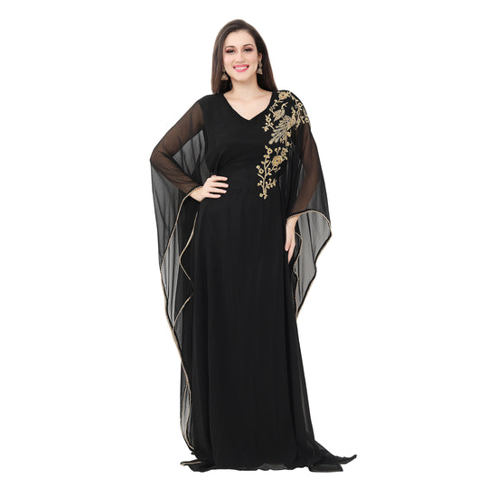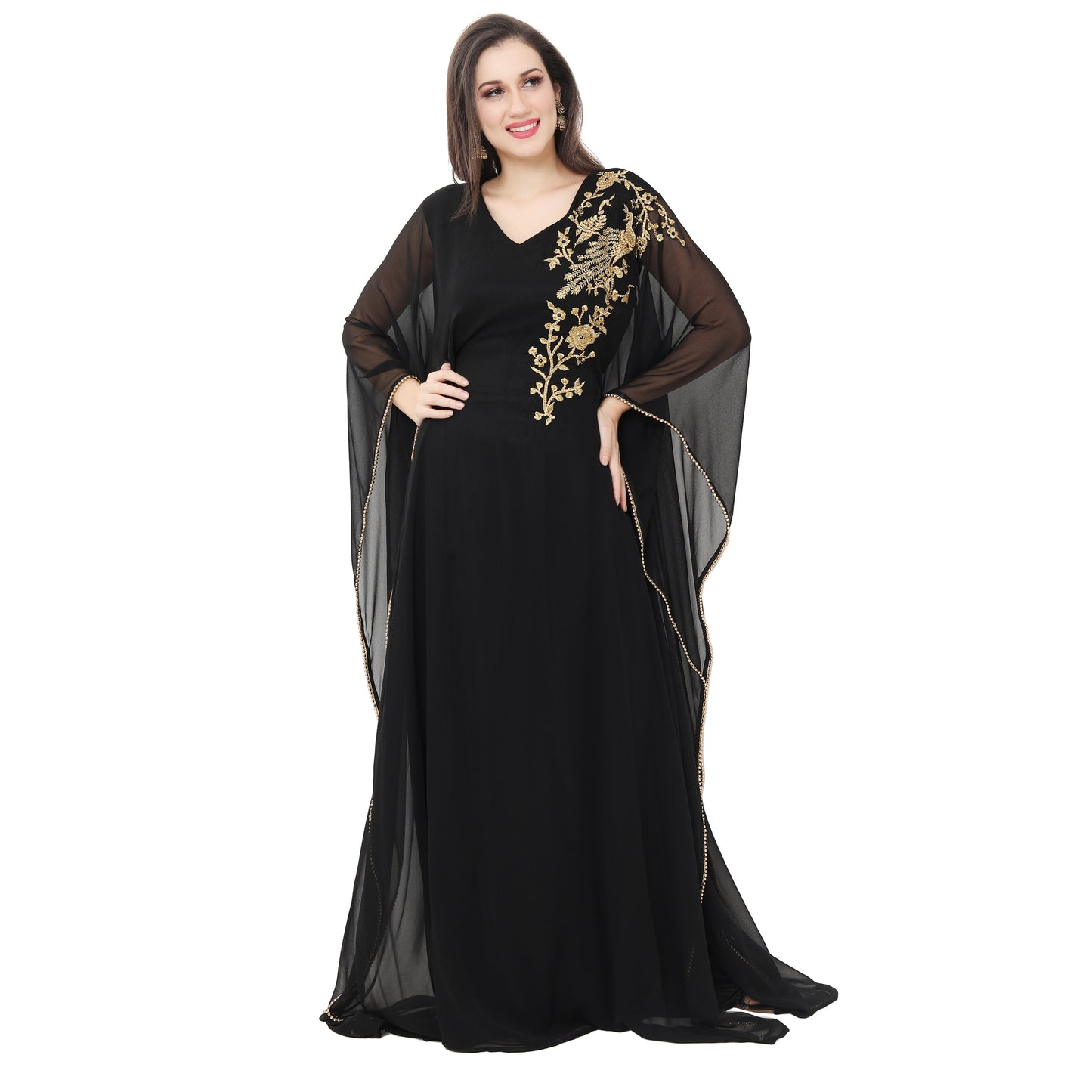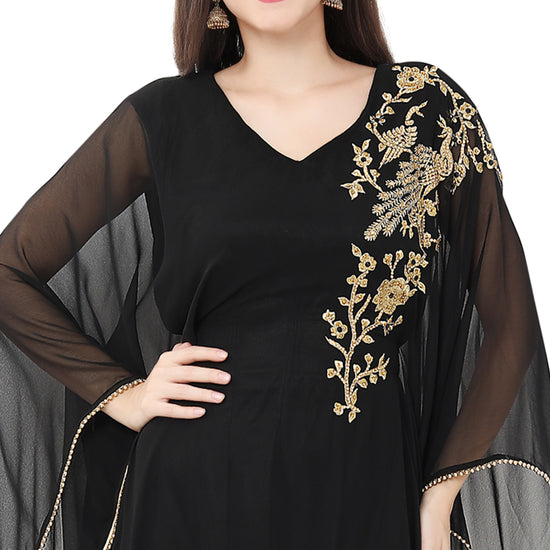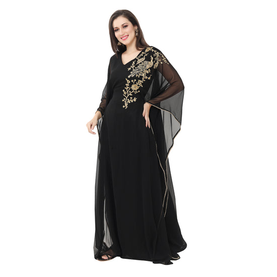Henna Party Gown Black Peacock Embroidery Farasha Maxi - Maxim Creation
