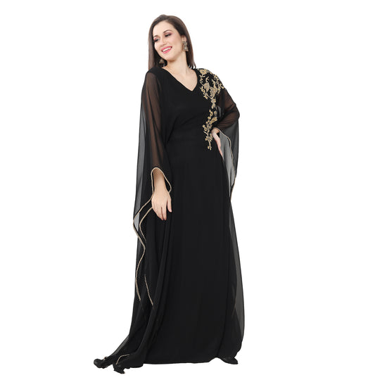 Henna Party Gown Black Peacock Embroidery Farasha Maxi