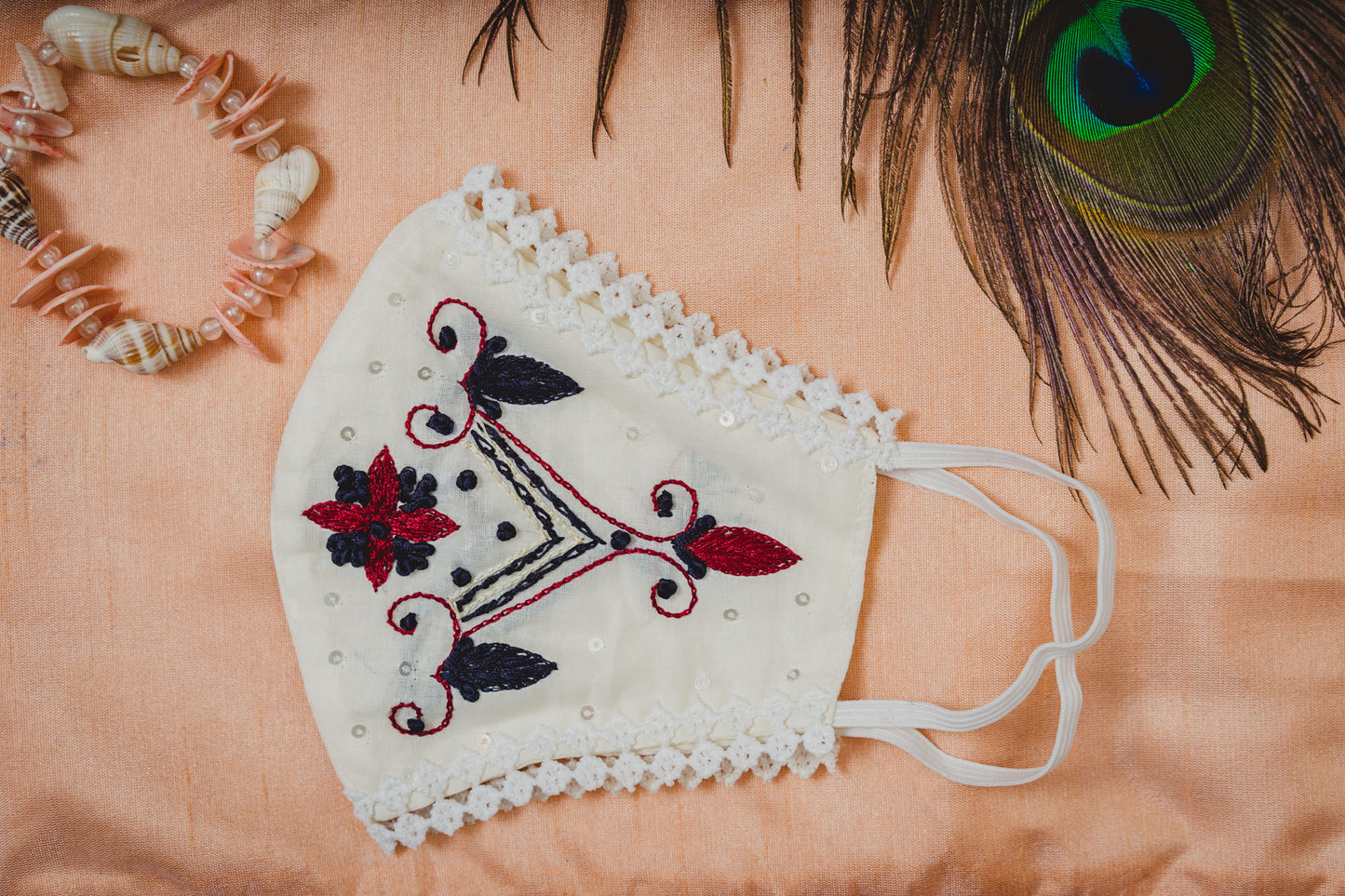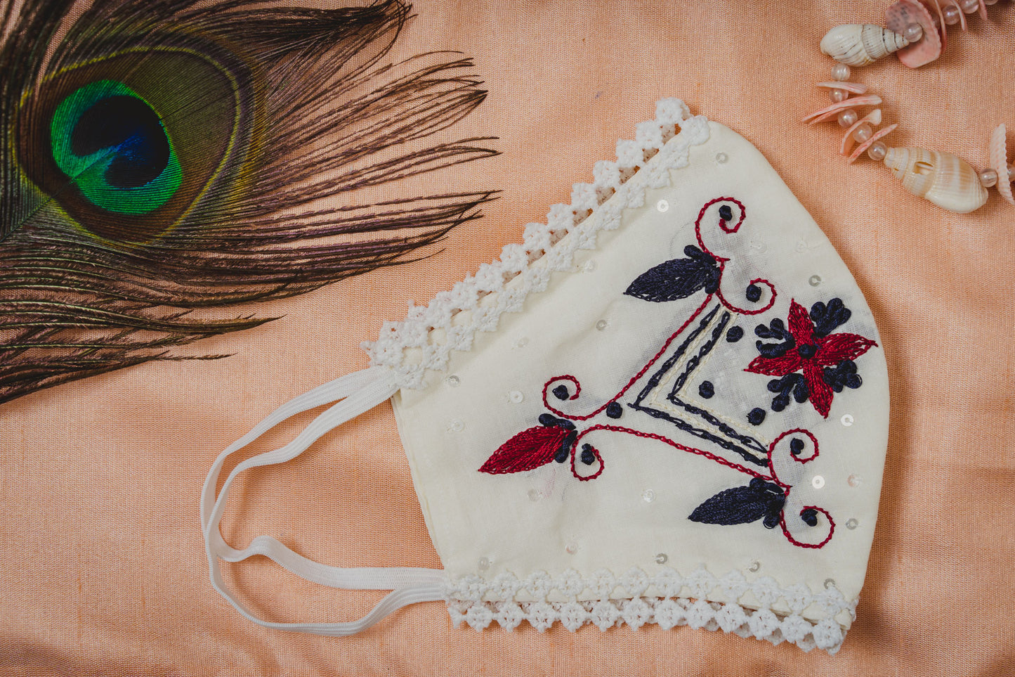 The mask adorns Floral Cotton Lace Work with Special Embroidery. It is a 100% cotton pure with Multi – Coloured Floral Texture with Shiny Sequins. Maxim Creation keeps safety as a first priority with unique and fashionably hand crafted designs. This timeless and luxurious piece face mask is perfect for family functions and parties or wedding occasion and casual wear. |