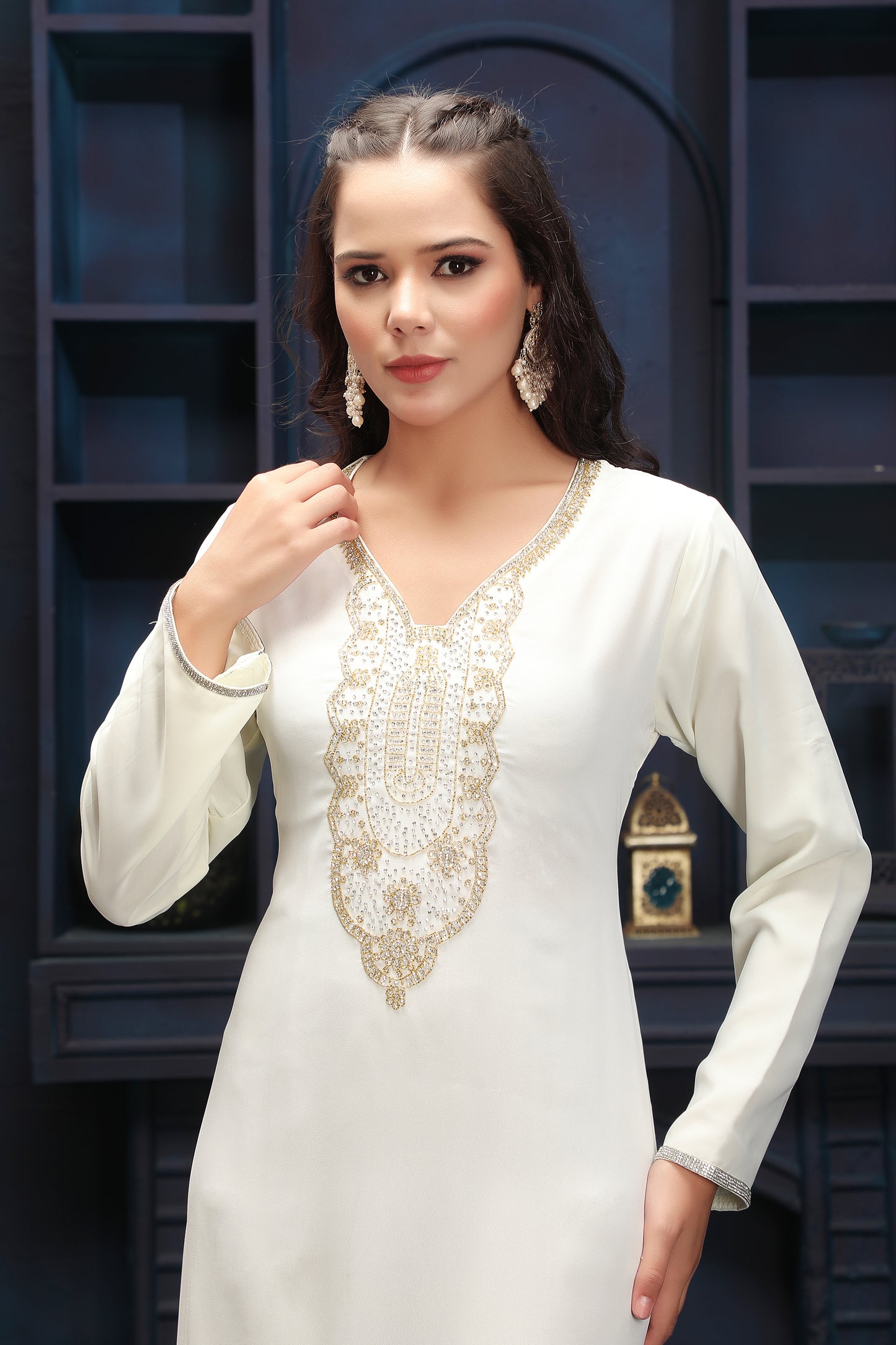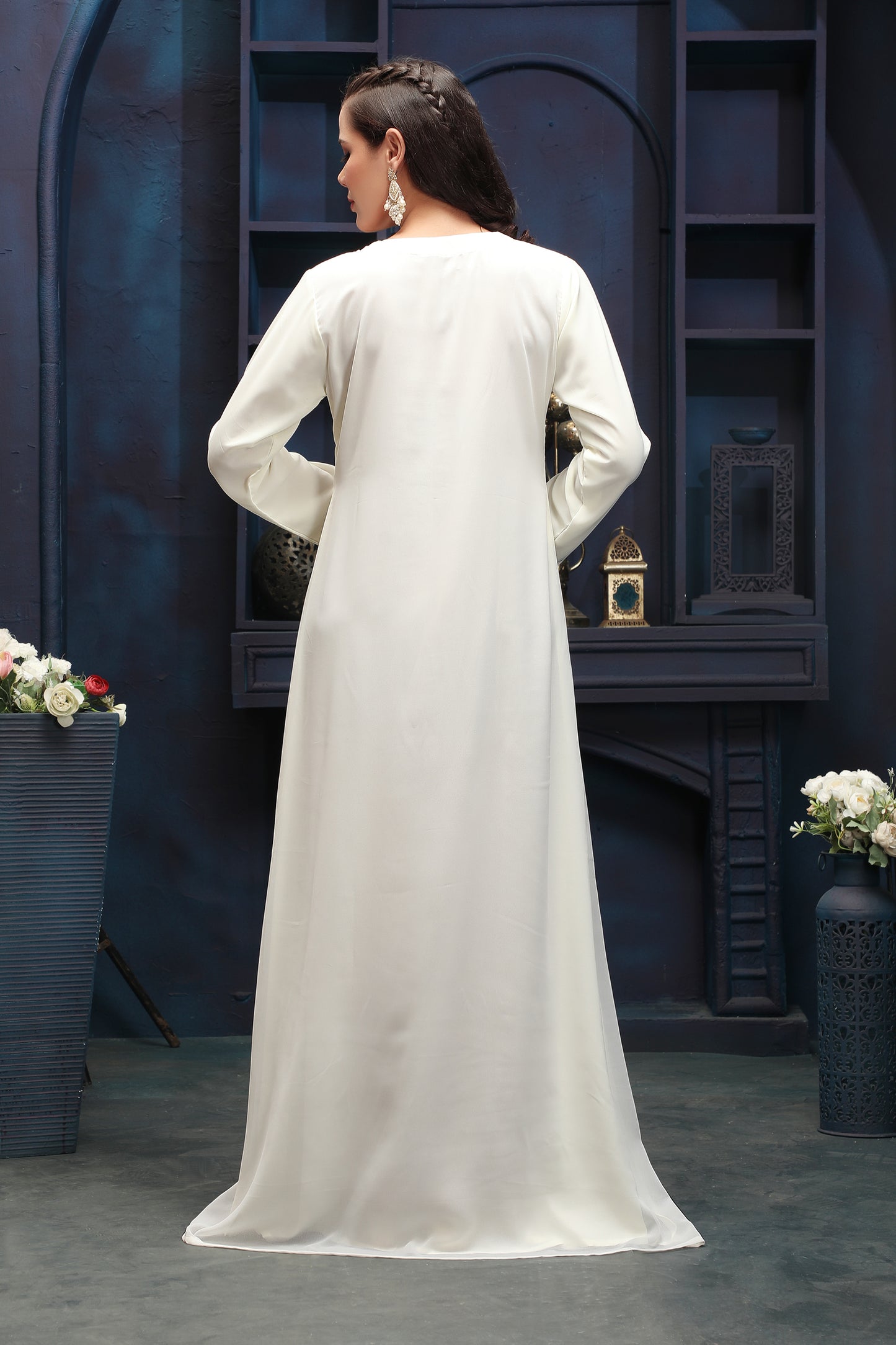 Designer Ivory Modest Dress with Clean Silhouette |