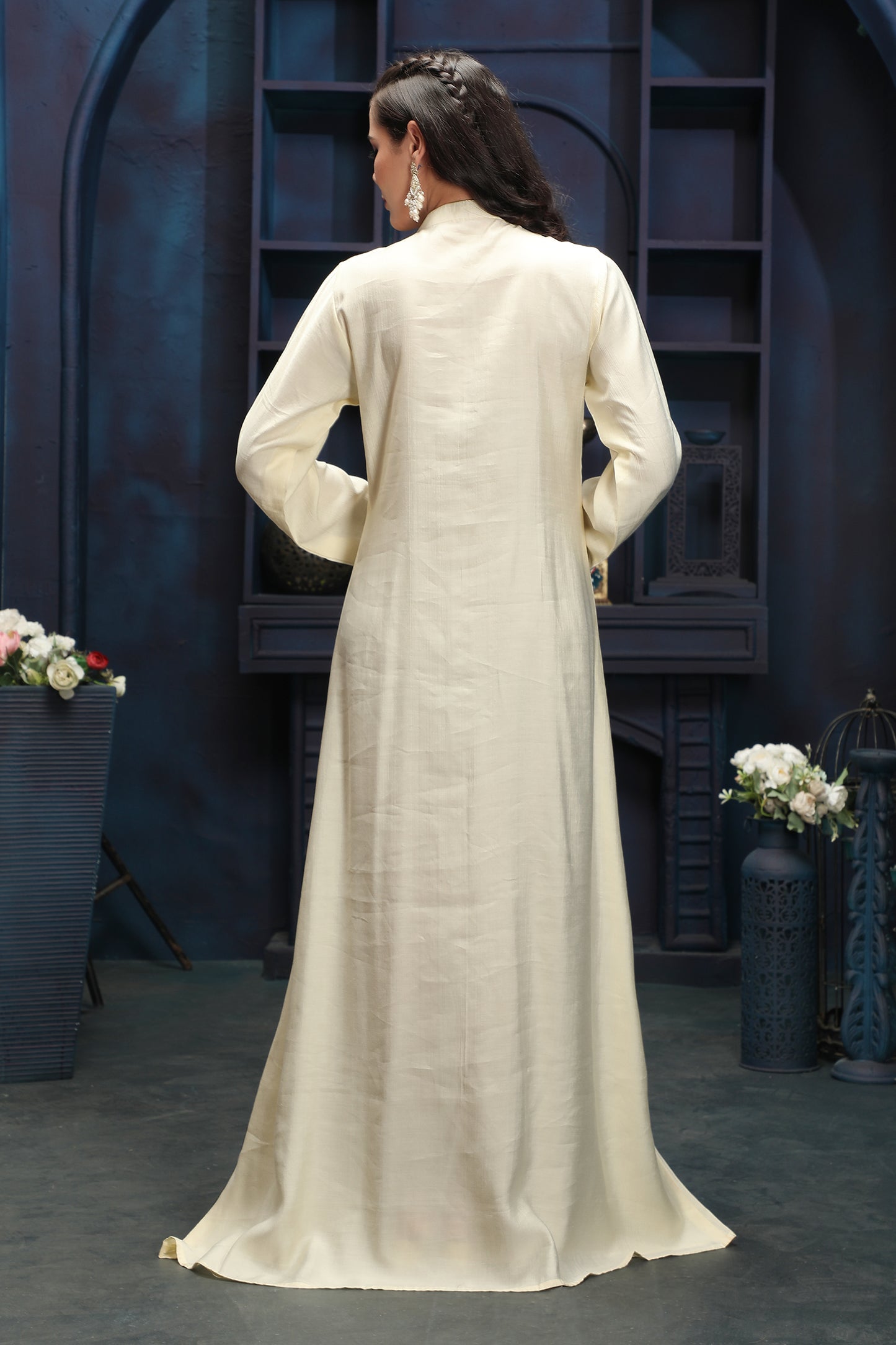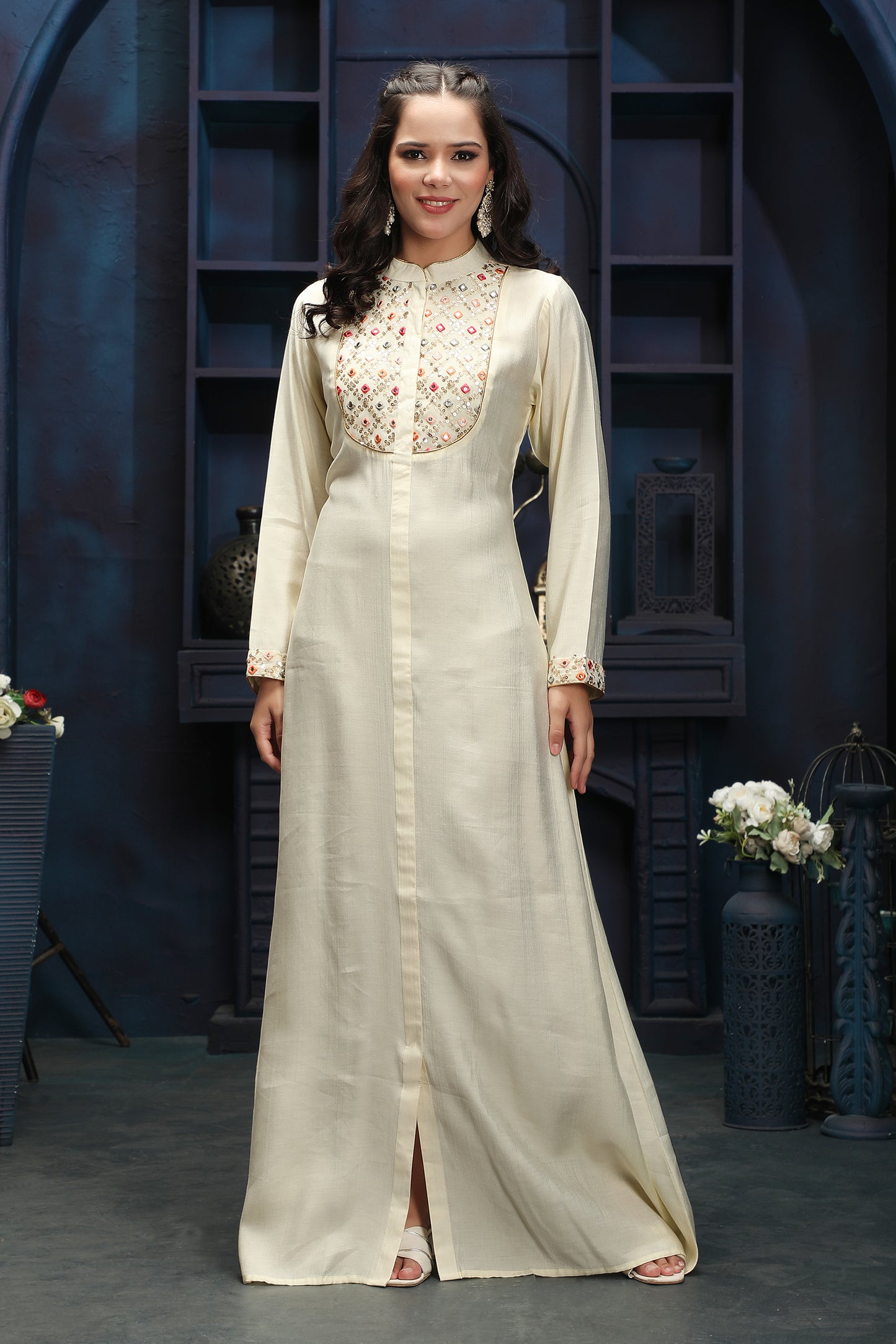 Designer Jalabiya in Ivory with Embroidered Front Panel By Maxim Creation |
